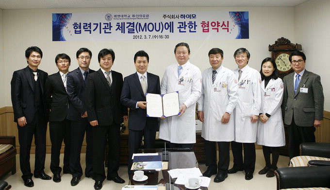 계명대 동산병원과 <주>하이모는 지난 7일 대구시 중구 동산병원장실에서 암과 투병하는 환우에게 맞춤형 가발을 지원하기 위한 MOU를 체결했다. 소아암으로 투병 중인 만 18세 이하의 환아를 매월 선별해 무료로 맞춤형 가발을 주고, 성인 암 환우에게는 시중가의 50%로 맞춤형 가발을 제공하기로 했다.