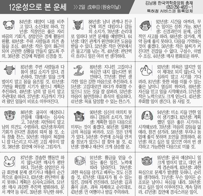 [12운성으로 본 오늘의 운세] 2일 戊申日(원숭이날) (오늘의 띠별 운세) (생년월일 운세)