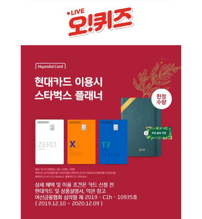오퀴즈에 '현대카드 스타벅스'가 등장했다.