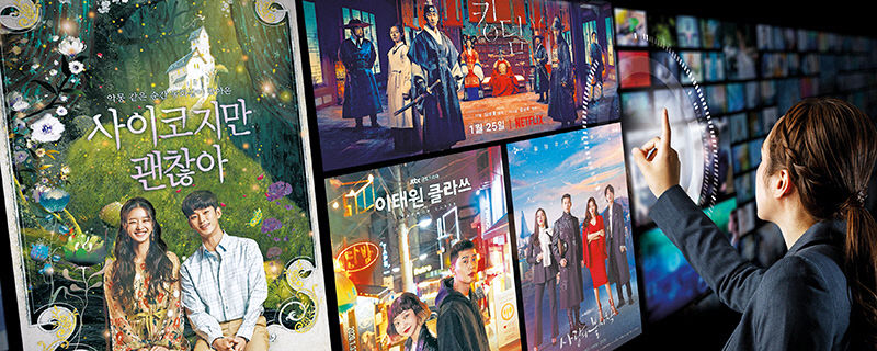 최근 아시아권에서 가장 핫한 K-드라마는 한류 스타 김수현이 주연을 맡은 '사이코지만 괜찮아'다. 넷플릭스를 통해 190개국에서 선보이고 있는 이 드라마는 홍콩, 태국, 베트남, 말레이시아 등 아시아권 7개국에서 '가장 많이 본 콘텐츠' 1위를 차지했고, 일본에서는 2∼3위를, 브라질과 페루 등 남미 전역에서도 10위권에 올랐다. 넷플릭스의 글로벌 종합 순위에선 6위까지 올랐는데, 이는 한국 드라마로는 역대 최고 순위다. 전 세계 시청자들은 "지금까지 봐온 K드라마와는 다르다" "전형적인 로맨스 드라마라고 생각하면 안 된다. 분명히 다른 깊이의 드라마다" 등 실시간 뜨거운 반응을 쏟아내고 있다. '사이코지만 괜찮아' 외에도 '사랑의 불시착' '이태원 클라쓰' '더 킹' '쌍갑포차' '우리, 사랑했을까' 등이 넷플릭스에서 큰 사랑을 받으며 순항 중이다.