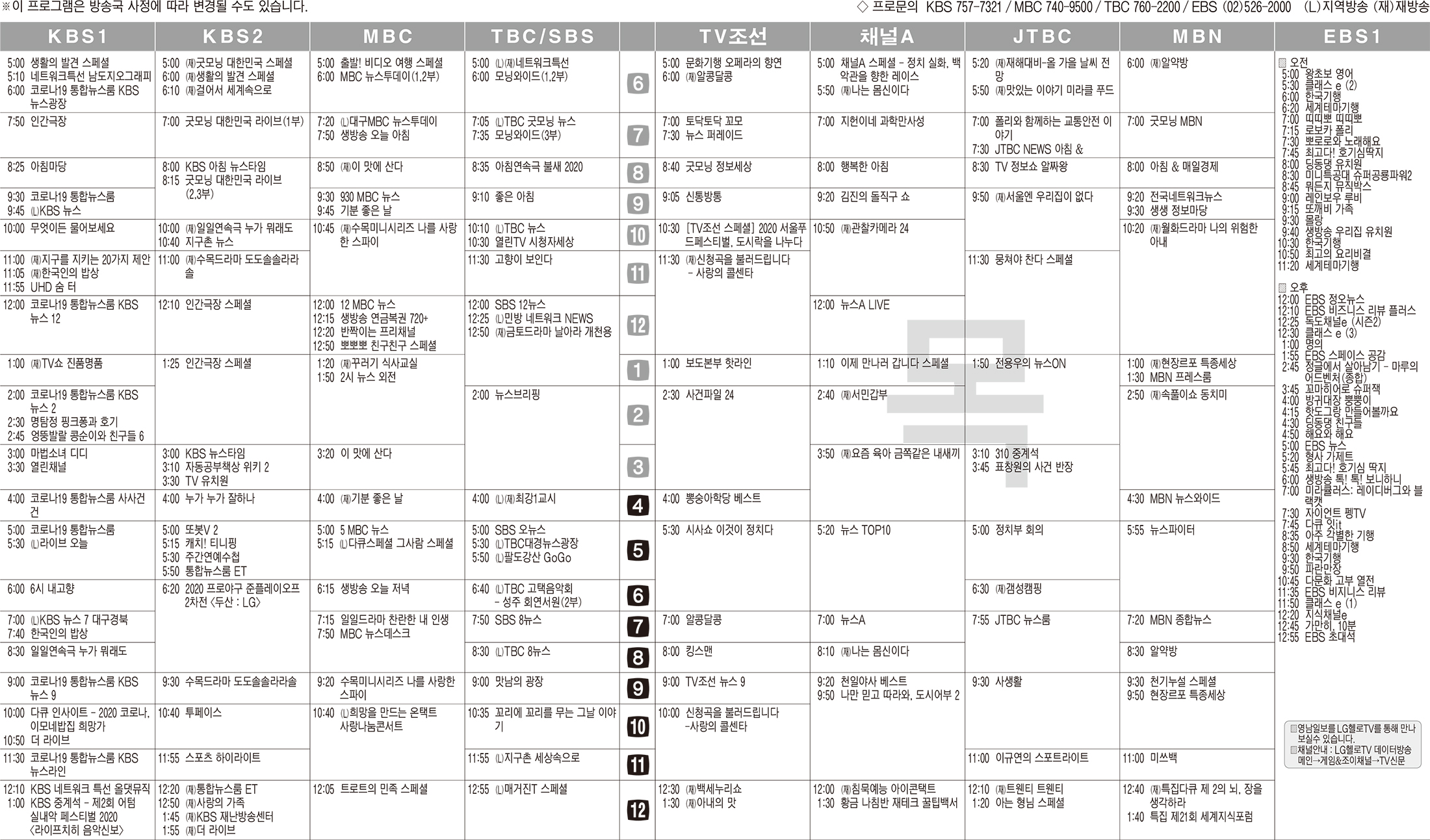 11월5일 TV 편성표
