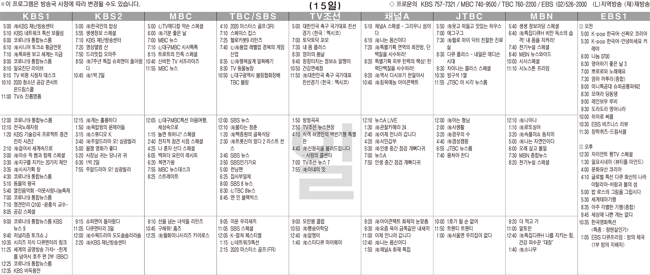 11월15일 TV 편성표