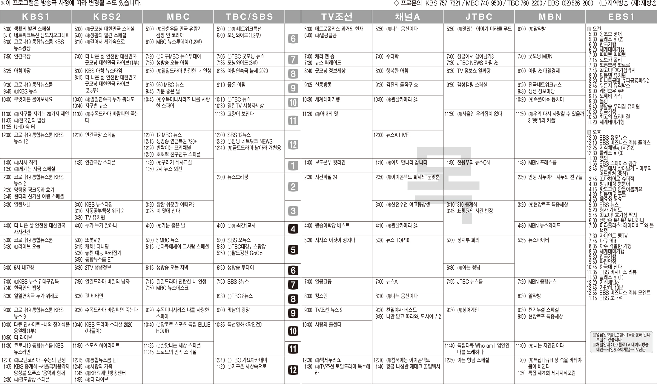 카카오톡 페이스북 트위터 전체 네이버밴드 네이버블로그 12월3일(목) TV 편성표 박성희 기사 전체보기 영남일보(www.yeongnam.com), 무단전재 및 수집, 재배포금지 연예인기뉴스