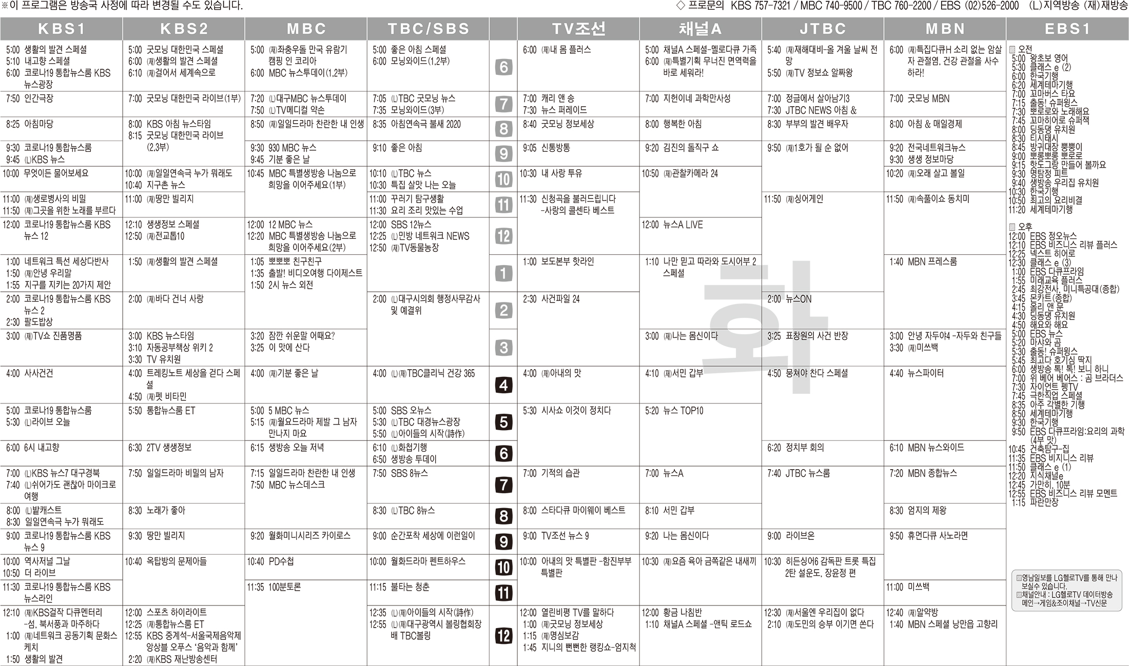 카카오톡 페이스북 트위터 전체 네이버밴드 네이버블로그 12월8일(화) TV 편성표 박성희 기사 전체보기 영남일보(www.yeongnam.com), 무단전재 및 수집, 재배포금지 연예인기뉴스