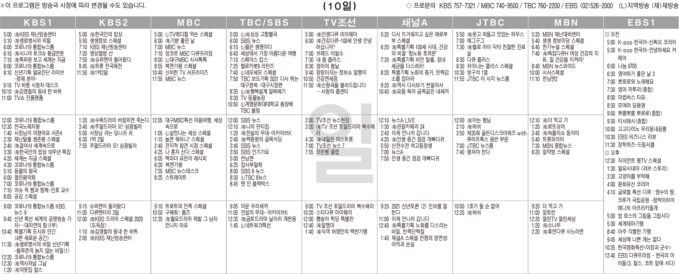 카카오톡 페이스북 트위터 전체 네이버밴드 네이버블로그 1월10일(일) TV 편성표 박성희 기사 전체보기 영남일보(www.yeongnam.com), 무단전재 및 수집, 재배포금지 연예인기뉴스