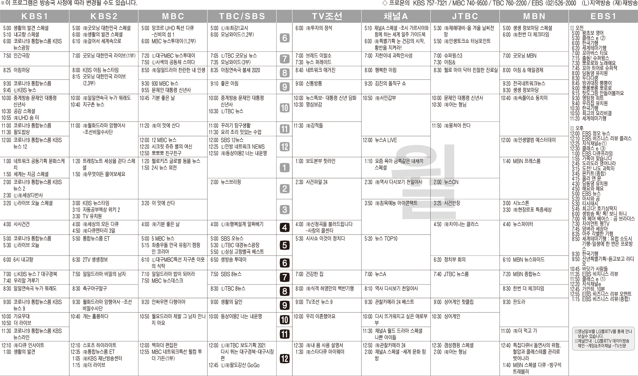 카카오톡 페이스북 트위터 전체 네이버밴드 네이버블로그 1월11일(월) TV 편성표 박성희 기사 전체보기 영남일보(www.yeongnam.com), 무단전재 및 수집, 재배포금지 연예인기뉴스