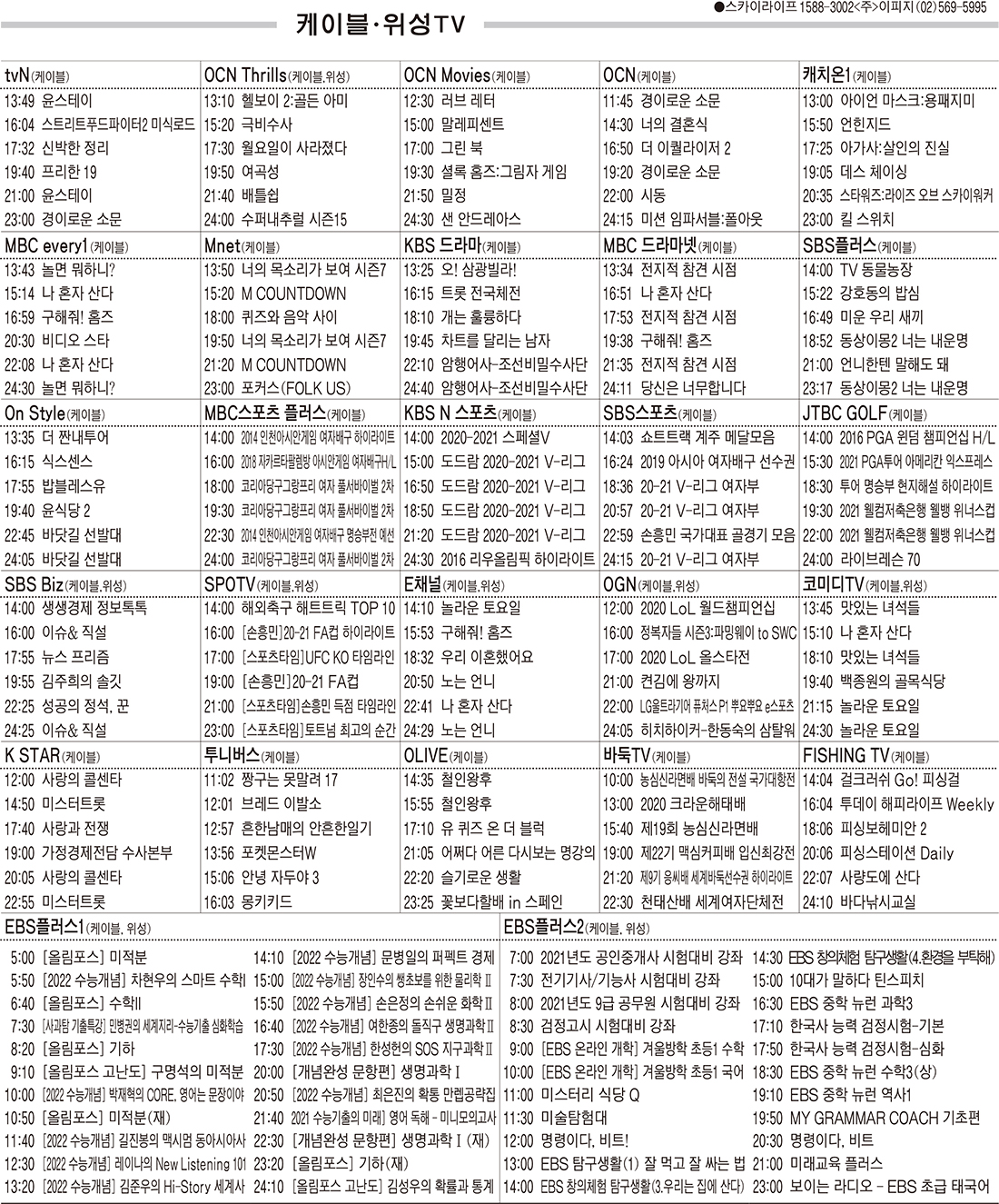 카카오톡 페이스북 트위터 전체 네이버밴드 네이버블로그 1월26일(화) 케이블·위성TV 편성표 박성희 기사 전체보기 영남일보(www.yeongnam.com), 무단전재 및 수집, 재배포금지 연예인기뉴스