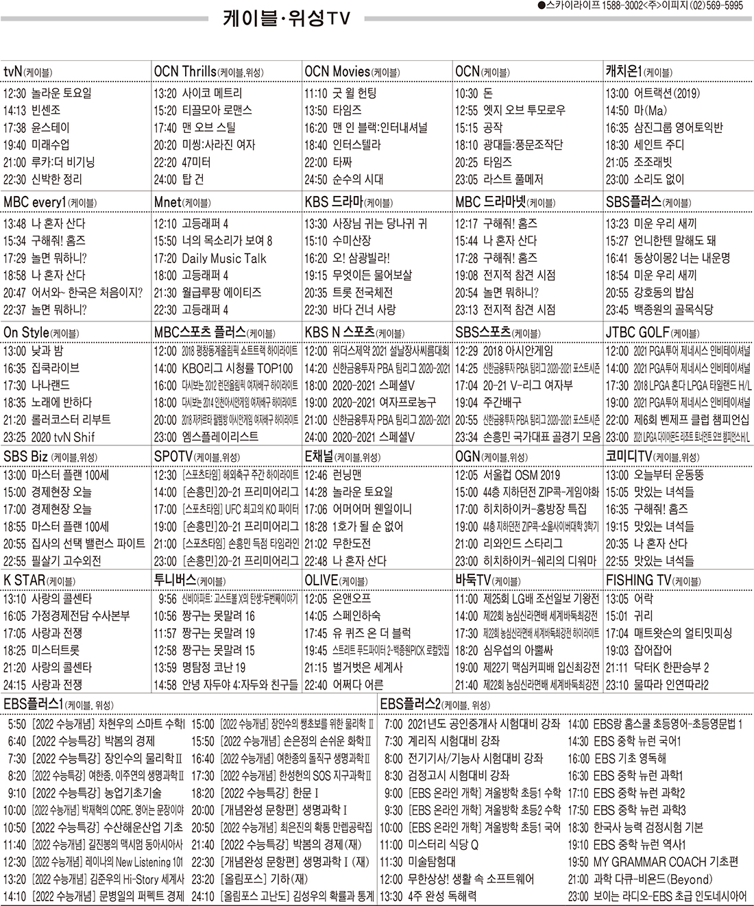 카카오톡 페이스북 트위터 전체 네이버밴드 네이버블로그 2월22일(월) 케이블·위성TV 편성표 박성희 기사 전체보기 영남일보(www.yeongnam.com), 무단전재 및 수집, 재배포금지 연예인기뉴스