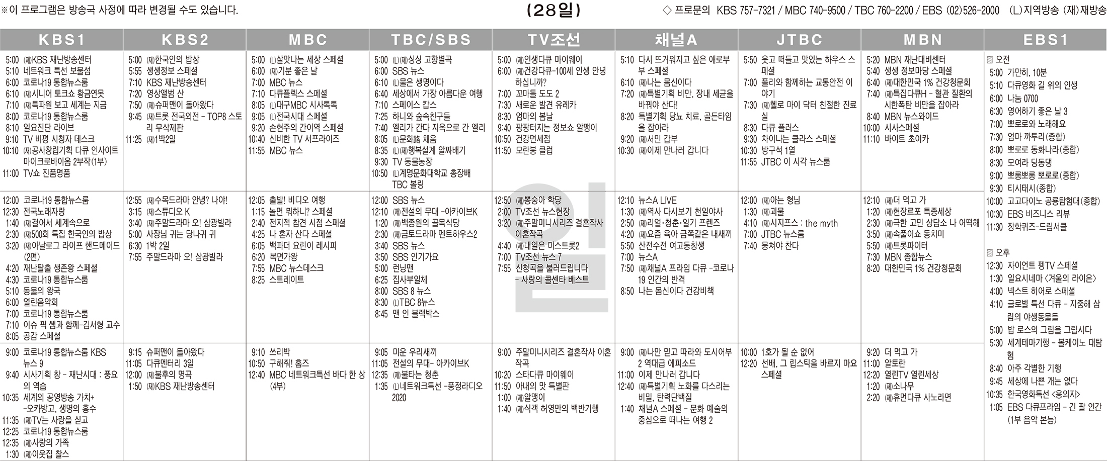 카카오톡 페이스북 트위터 전체 네이버밴드 네이버블로그 2월28일(일) TV 편성표 박성희 기사 전체보기 영남일보(www.yeongnam.com), 무단전재 및 수집, 재배포금지 연예인기뉴스