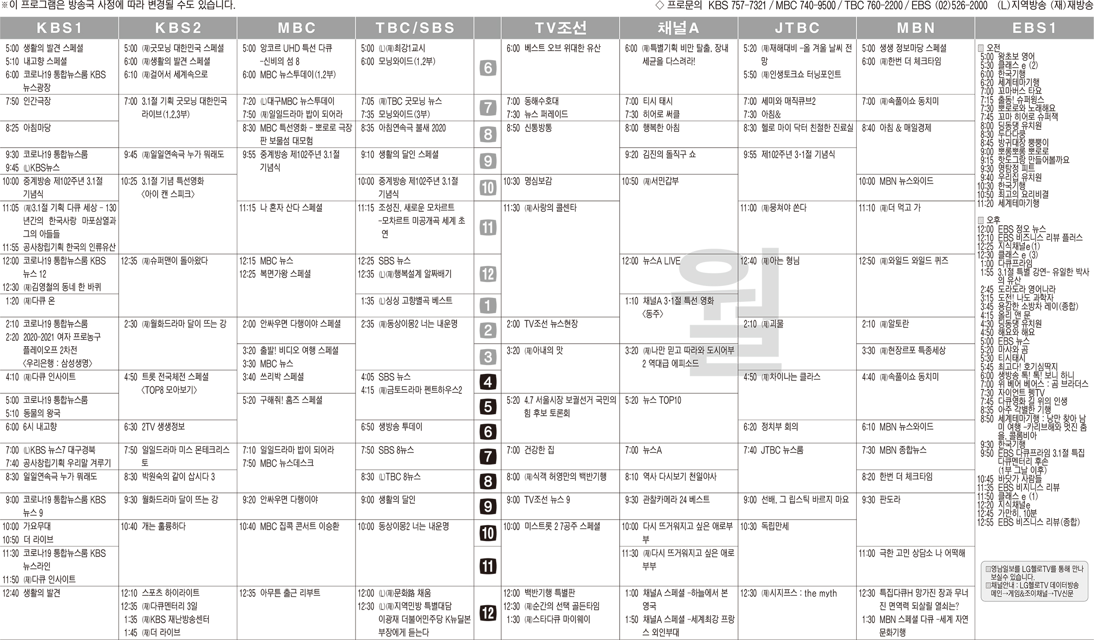 카카오톡 페이스북 트위터 전체 네이버밴드 네이버블로그 3월1일(월) TV 편성표 박성희 기사 전체보기 영남일보(www.yeongnam.com), 무단전재 및 수집, 재배포금지 연예인기뉴스