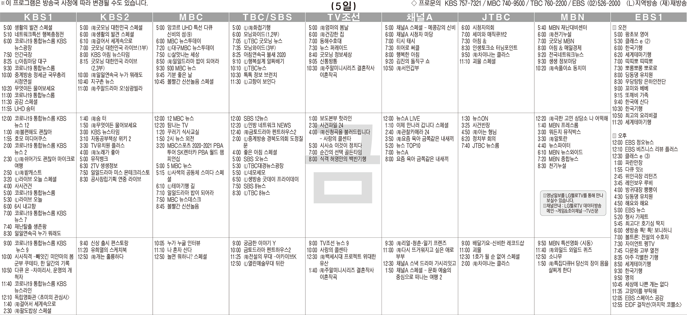 카카오톡 페이스북 트위터 전체 네이버밴드 네이버블로그 3월5일(금) TV 편성표 박성희 기사 전체보기 영남일보(www.yeongnam.com), 무단전재 및 수집, 재배포금지 연예인기뉴스