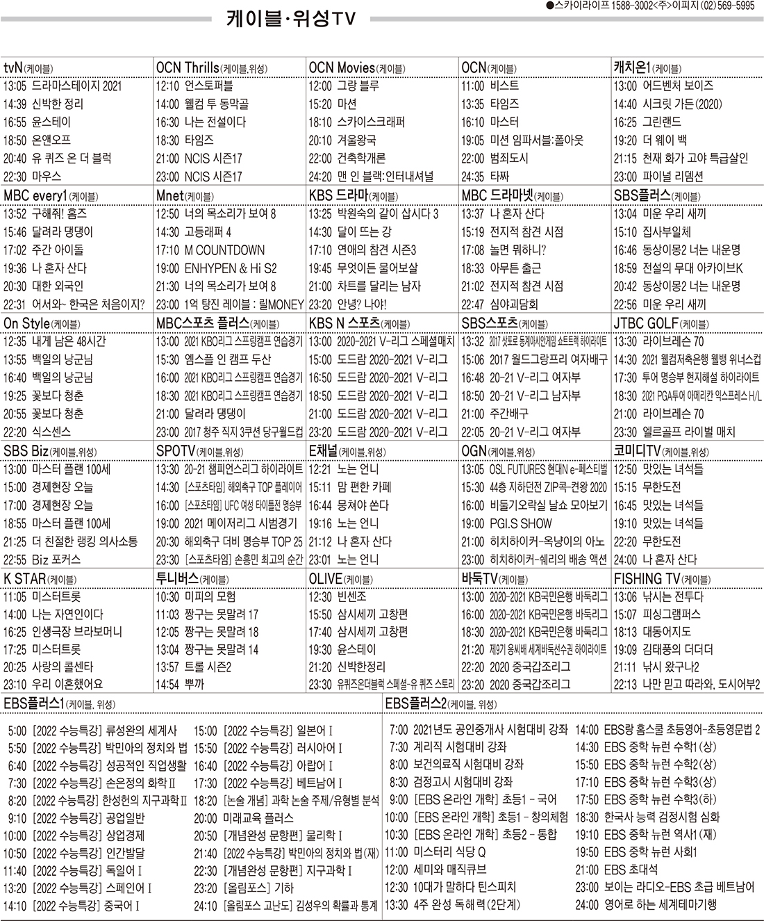 카카오톡 페이스북 트위터 전체 네이버밴드 네이버블로그 3월17일(수) 케이블·위성TV 편성표 박성희 기사 전체보기 영남일보(www.yeongnam.com), 무단전재 및 수집, 재배포금지 연예인기뉴스
