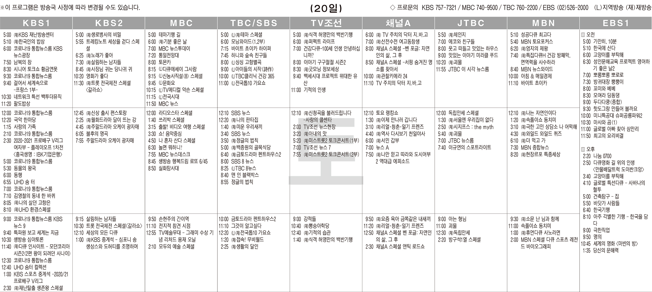 카카오톡 페이스북 트위터 전체 네이버밴드 네이버블로그 3월20일(토) TV 편성표 박성희 기사 전체보기 영남일보(www.yeongnam.com), 무단전재 및 수집, 재배포금지 연예인기뉴스