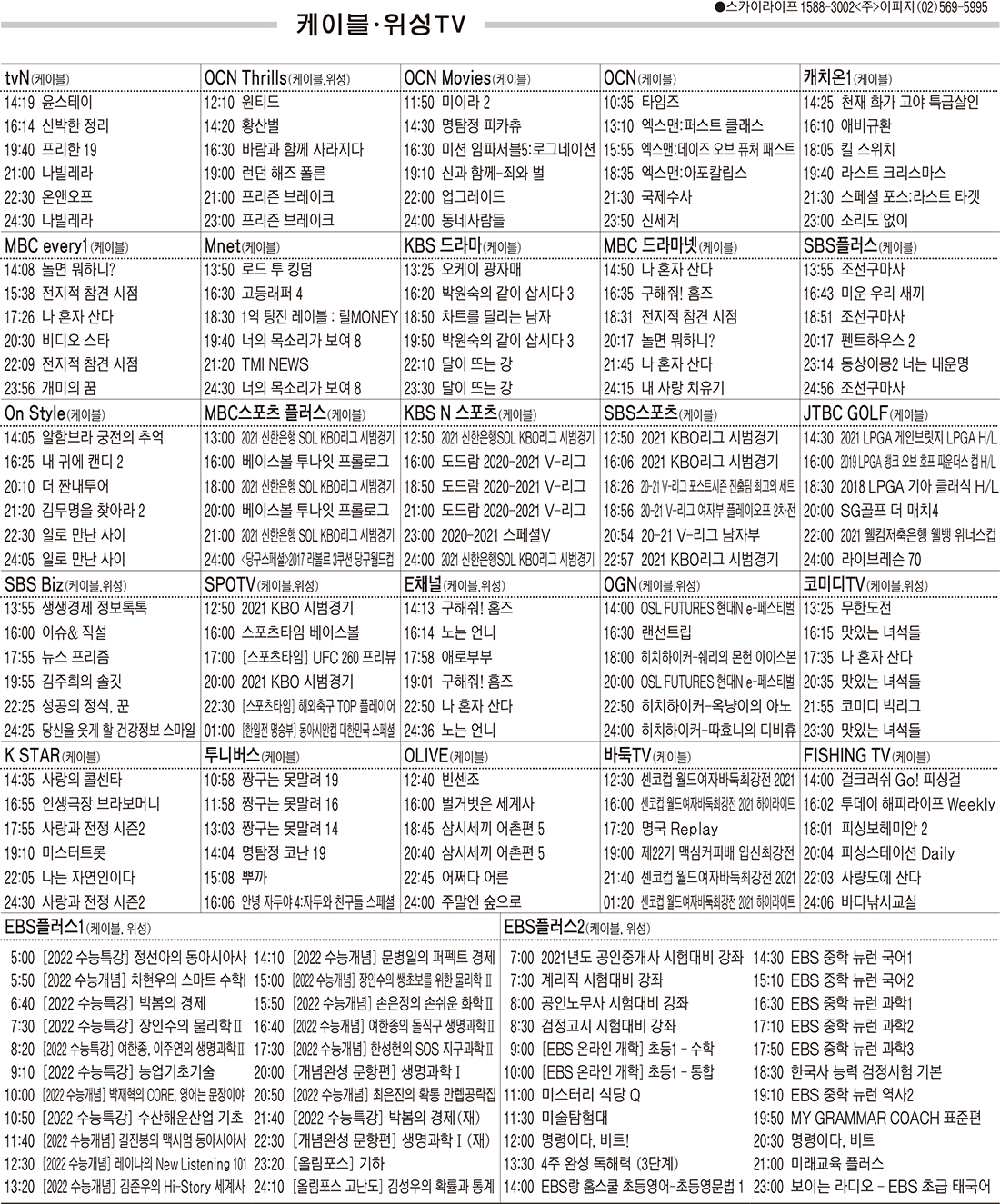 카카오톡 페이스북 트위터 전체 네이버밴드 네이버블로그 3월23일(화) 케이블·위성TV 편성표 박성희 기사 전체보기 영남일보(www.yeongnam.com), 무단전재 및 수집, 재배포금지 연예인기뉴스