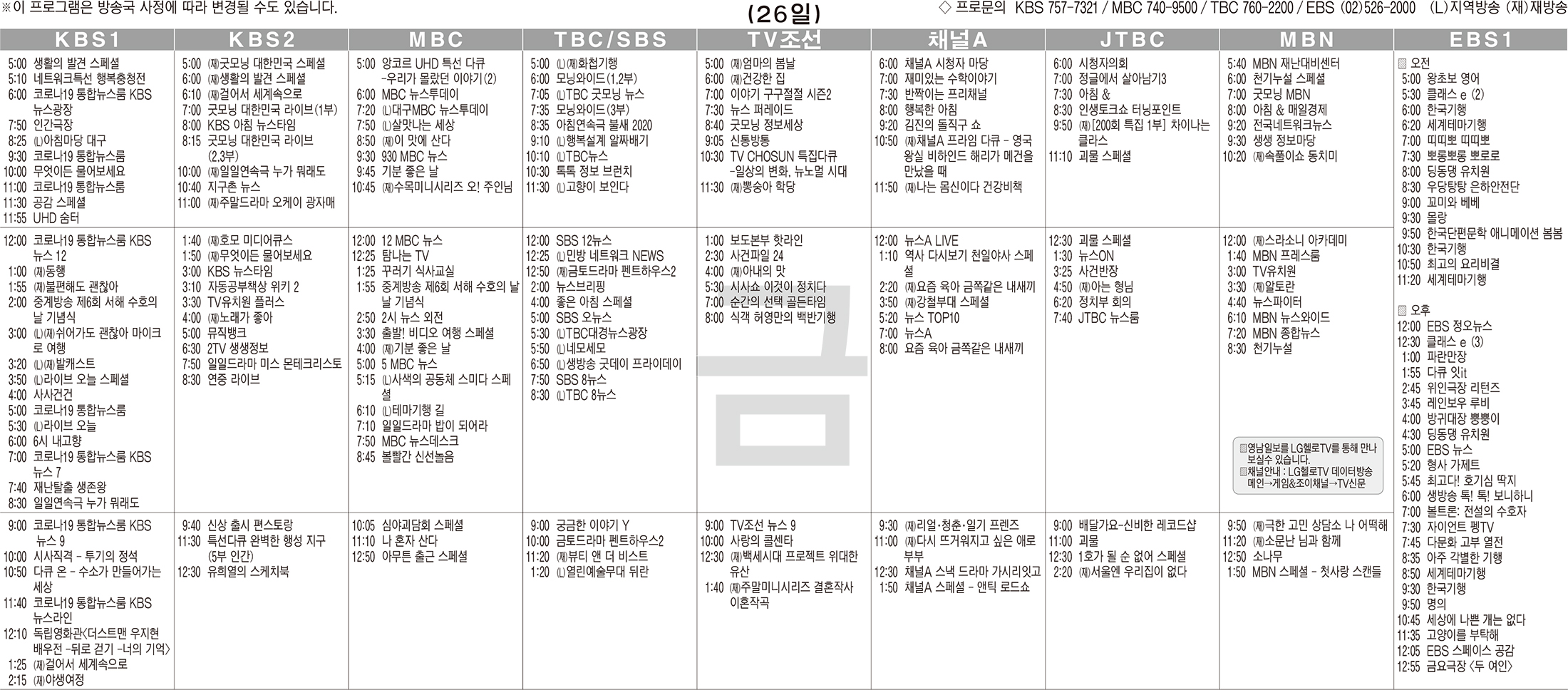 카카오톡 페이스북 트위터 전체 네이버밴드 네이버블로그 3월26일(금) TV 편성표 박성희 기사 전체보기 영남일보(www.yeongnam.com), 무단전재 및 수집, 재배포금지 연예인기뉴스