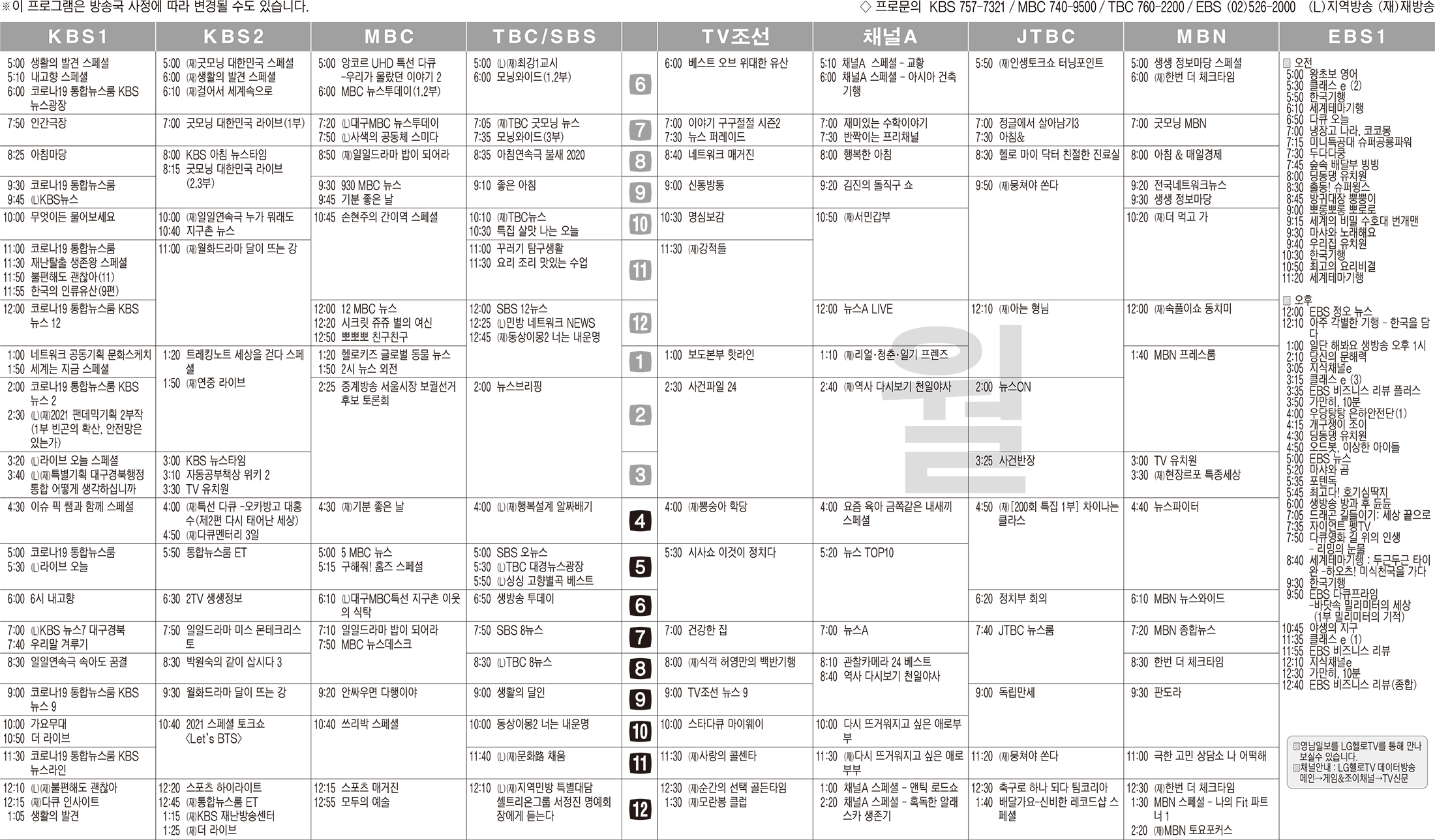 카카오톡 페이스북 트위터 전체 네이버밴드 네이버블로그 3월29일(월) TV 편성표 박성희 기사 전체보기 영남일보(www.yeongnam.com), 무단전재 및 수집, 재배포금지 연예인기뉴스