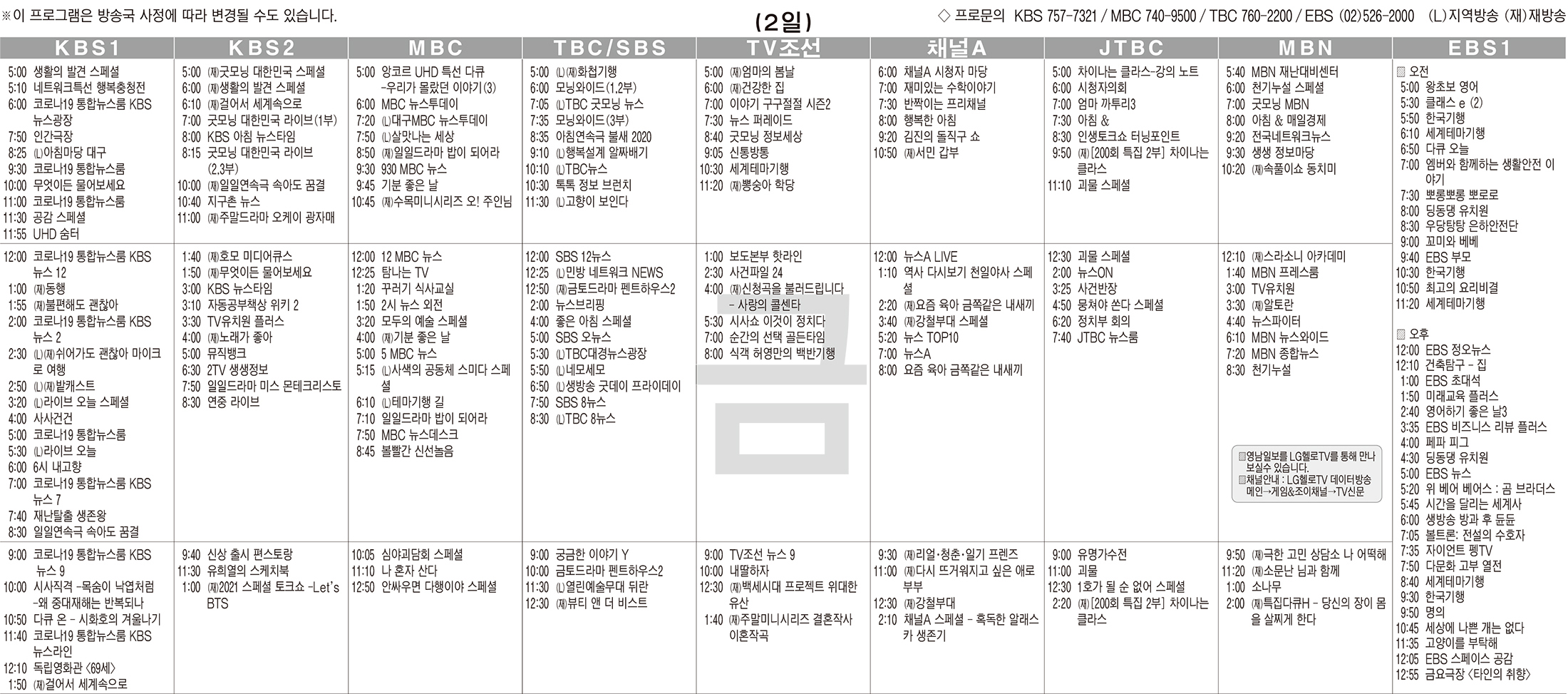 카카오톡 페이스북 트위터 전체 네이버밴드 네이버블로그 4월2일(금) TV 편성표 박성희 기사 전체보기 영남일보(www.yeongnam.com), 무단전재 및 수집, 재배포금지 연예인기뉴스