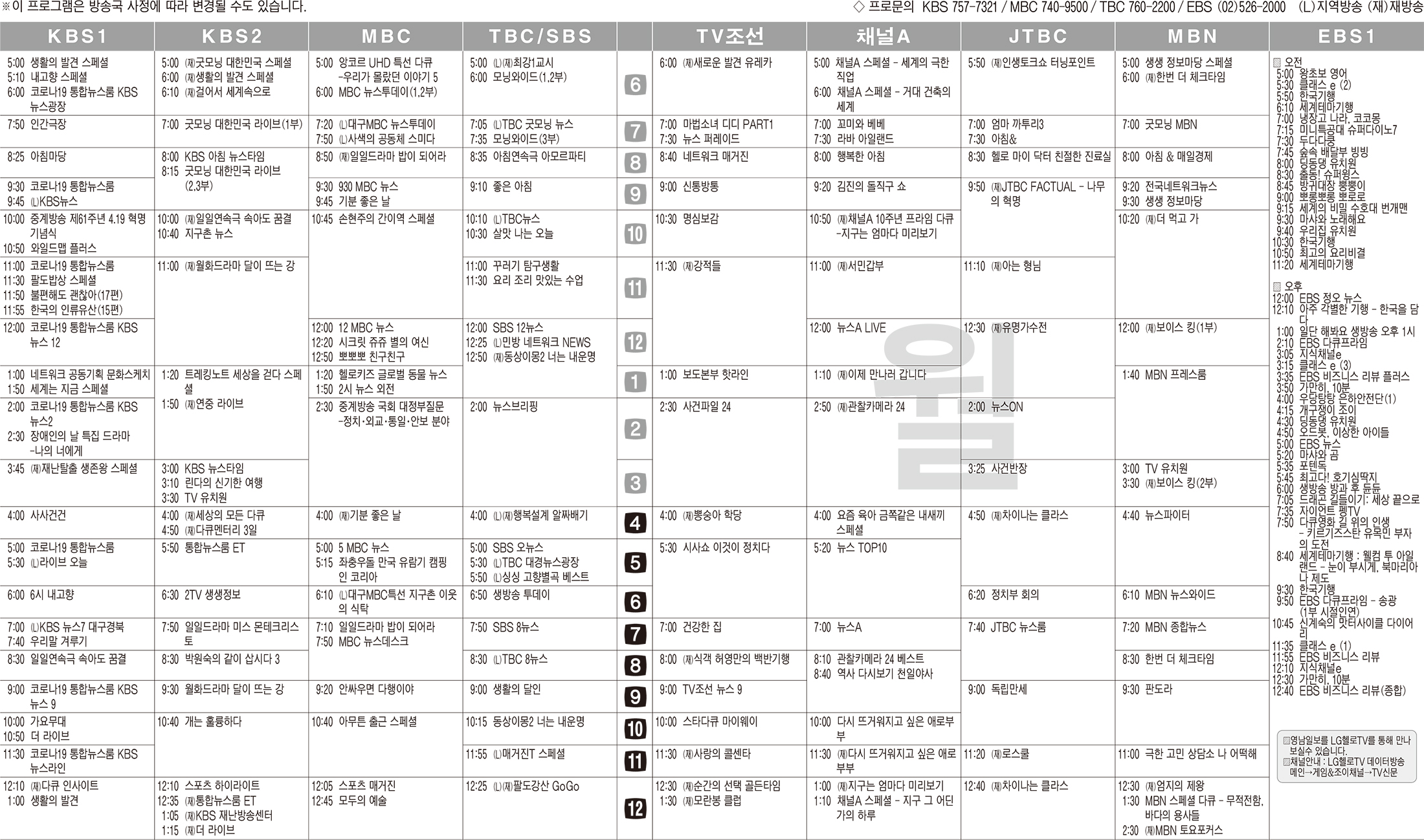 카카오톡 페이스북 트위터 전체 네이버밴드 네이버블로그 4월19일(월) TV 편성표 박성희 기사 전체보기 영남일보(www.yeongnam.com), 무단전재 및 수집, 재배포금지 연예인기뉴스