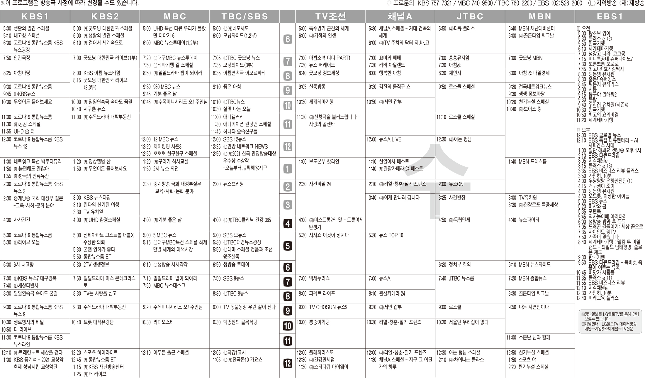 카카오톡 페이스북 트위터 전체 네이버밴드 네이버블로그 4월21일(수) TV 편성표 박성희 기사 전체보기 영남일보(www.yeongnam.com), 무단전재 및 수집, 재배포금지 연예인기뉴스
