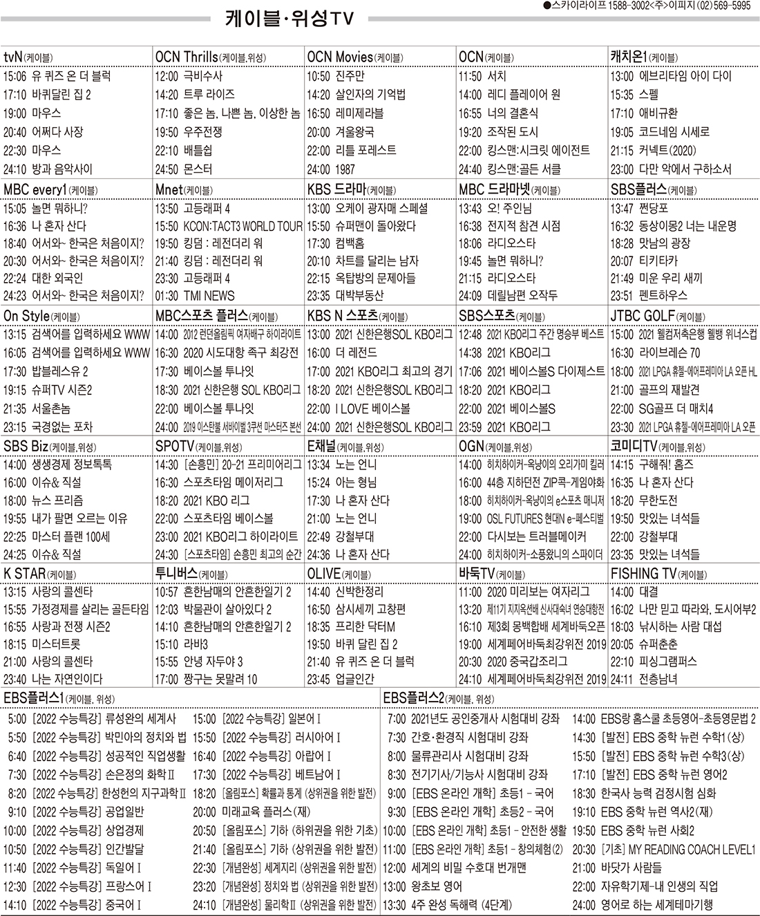 카카오톡 페이스북 트위터 전체 네이버밴드 네이버블로그 4월22일(목) 케이블·위성TV 편성표 박성희 기사 전체보기 영남일보(www.yeongnam.com), 무단전재 및 수집, 재배포금지 연예인기뉴스