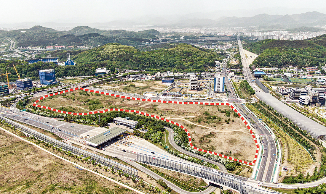| 대구 역대 최대 규모의 복합쇼핑 시설 '대구롯데쇼핑타운'이 2025년 하반기 완공을 목표로 다음 달 착공할 예정이다. 점선 부분은 수성구 수성의료지구 내 대구롯데쇼핑타운 건립 예정지. 이현덕기자 lhd@yeongnam.com |