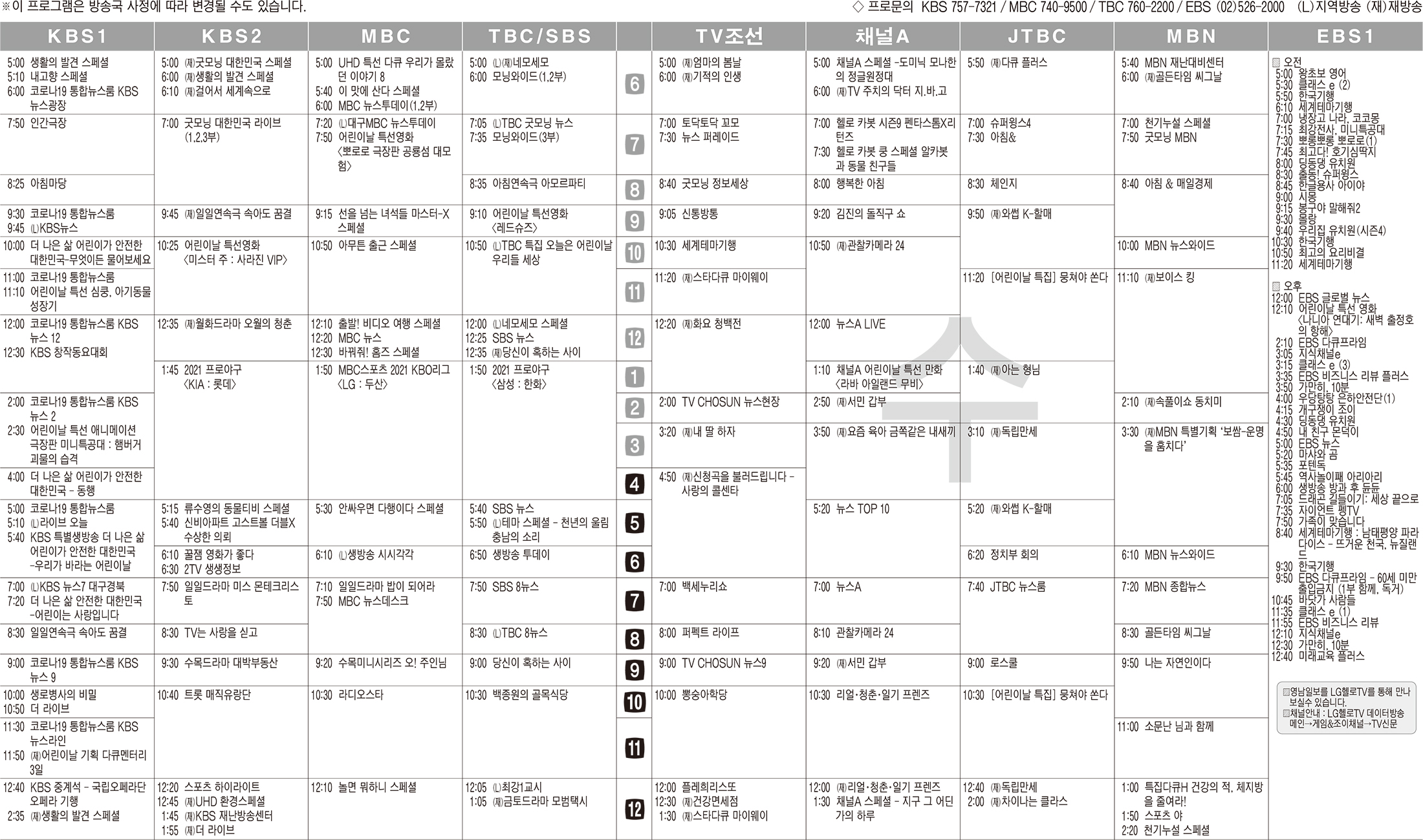 카카오톡 페이스북 트위터 전체 네이버밴드 네이버블로그 5월5일(수) TV 편성표 박성희 기사 전체보기 영남일보(www.yeongnam.com), 무단전재 및 수집, 재배포금지 연예인기뉴스