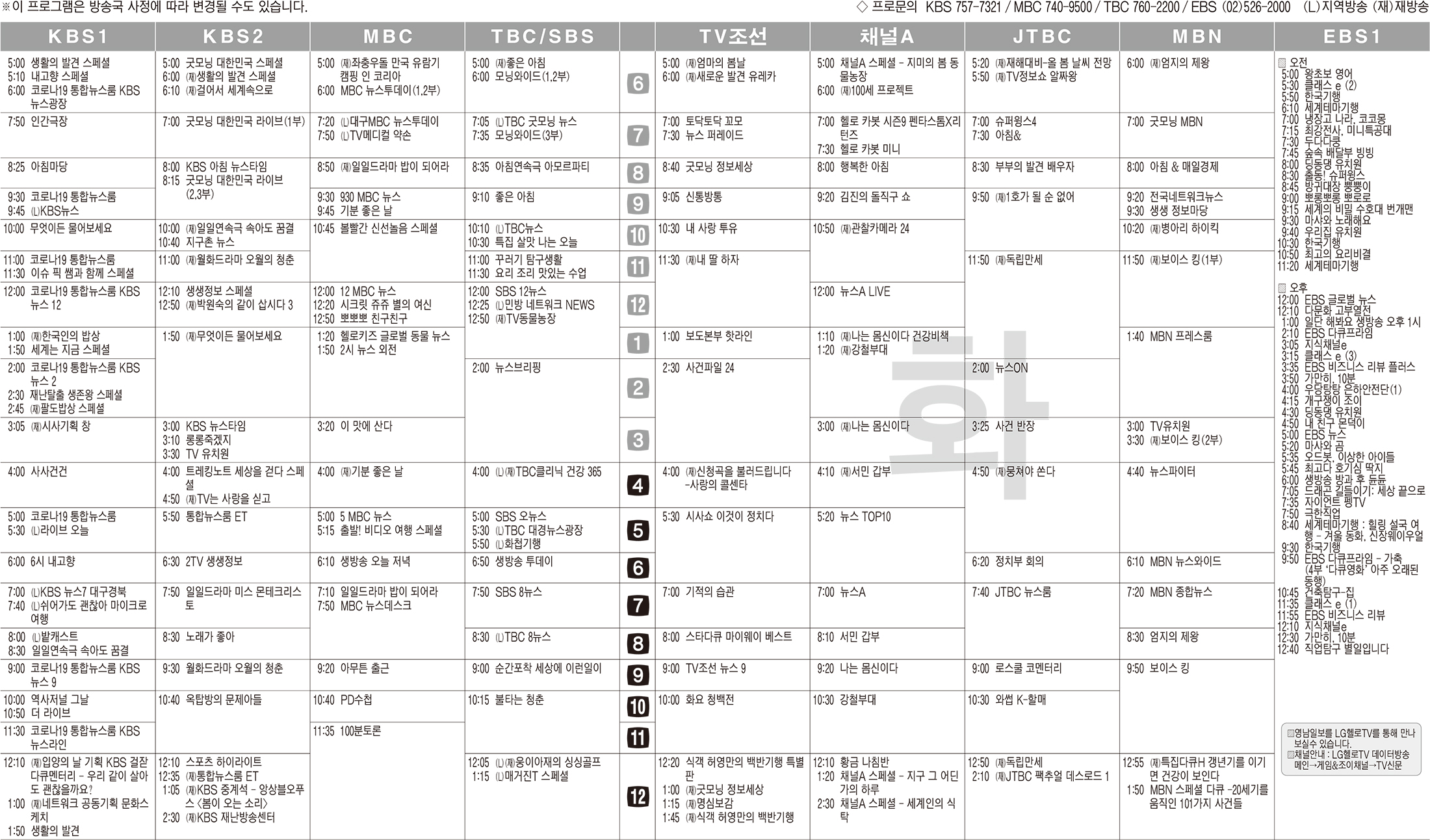 카카오톡 페이스북 트위터 전체 네이버밴드 네이버블로그 5월11일(화) TV 편성표 박성희 기사 전체보기 영남일보(www.yeongnam.com), 무단전재 및 수집, 재배포금지 연예인기뉴스