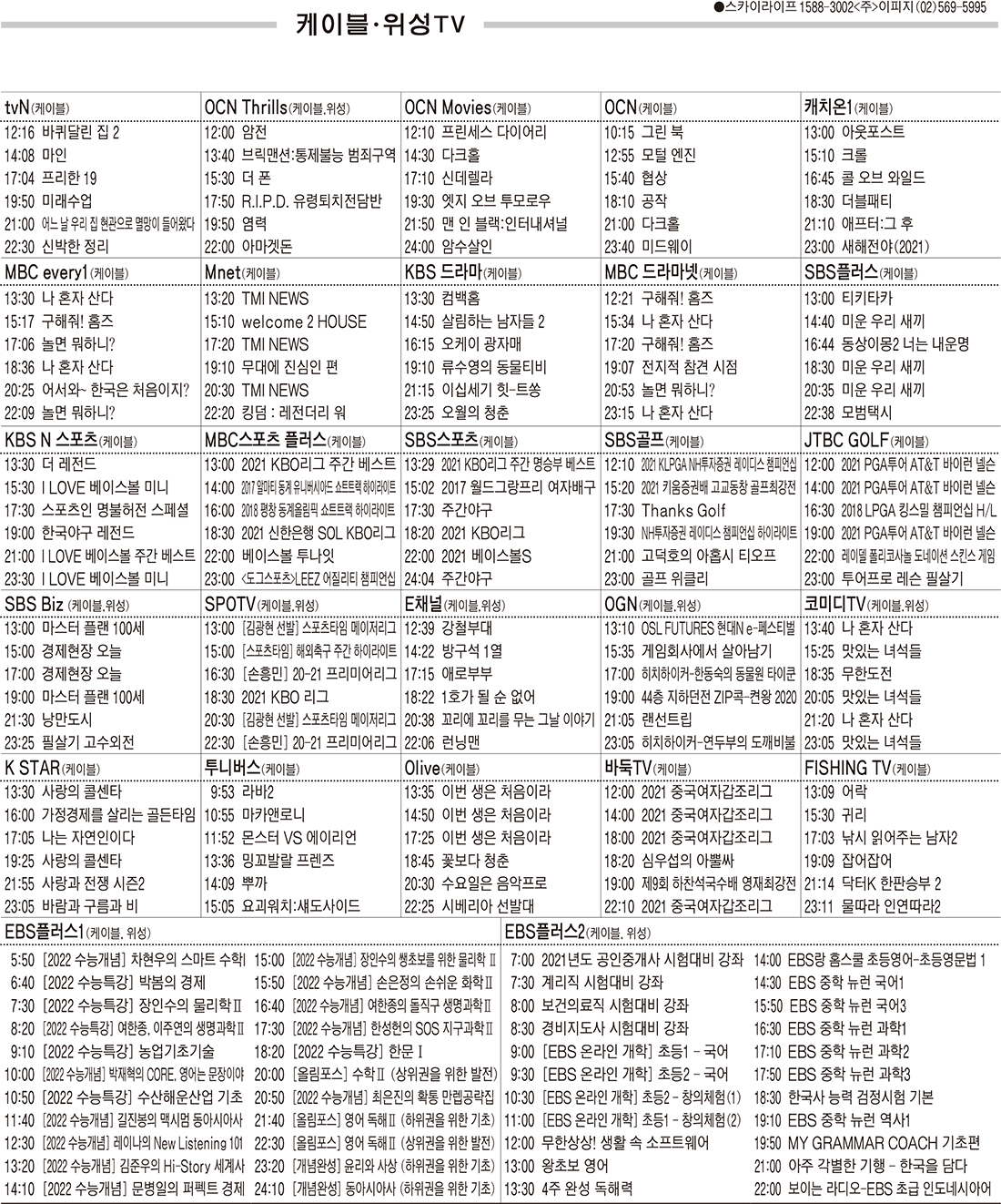 카카오톡 페이스북 트위터 전체 네이버밴드 네이버블로그 5월17일(월) 케이블·위성TV 편성표 박성희 기사 전체보기 영남일보(www.yeongnam.com), 무단전재 및 수집, 재배포금지 연예인기뉴스