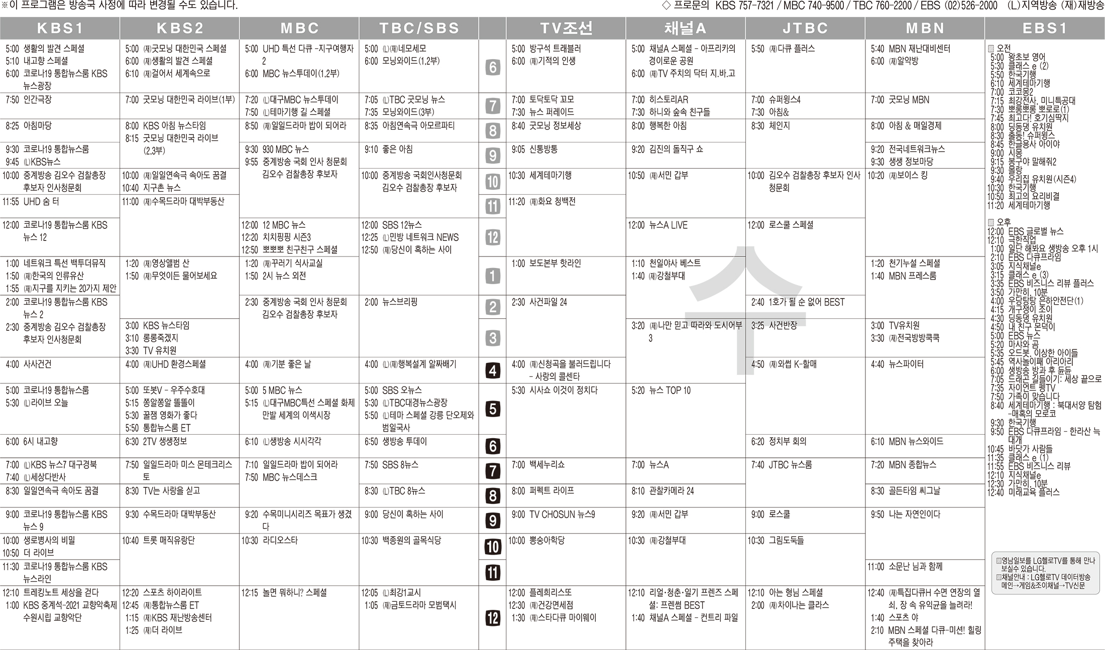 카카오톡 페이스북 트위터 전체 네이버밴드 네이버블로그 5월26일(수) TV 편성표 박성희 기사 전체보기 영남일보(www.yeongnam.com), 무단전재 및 수집, 재배포금지 연예인기뉴스