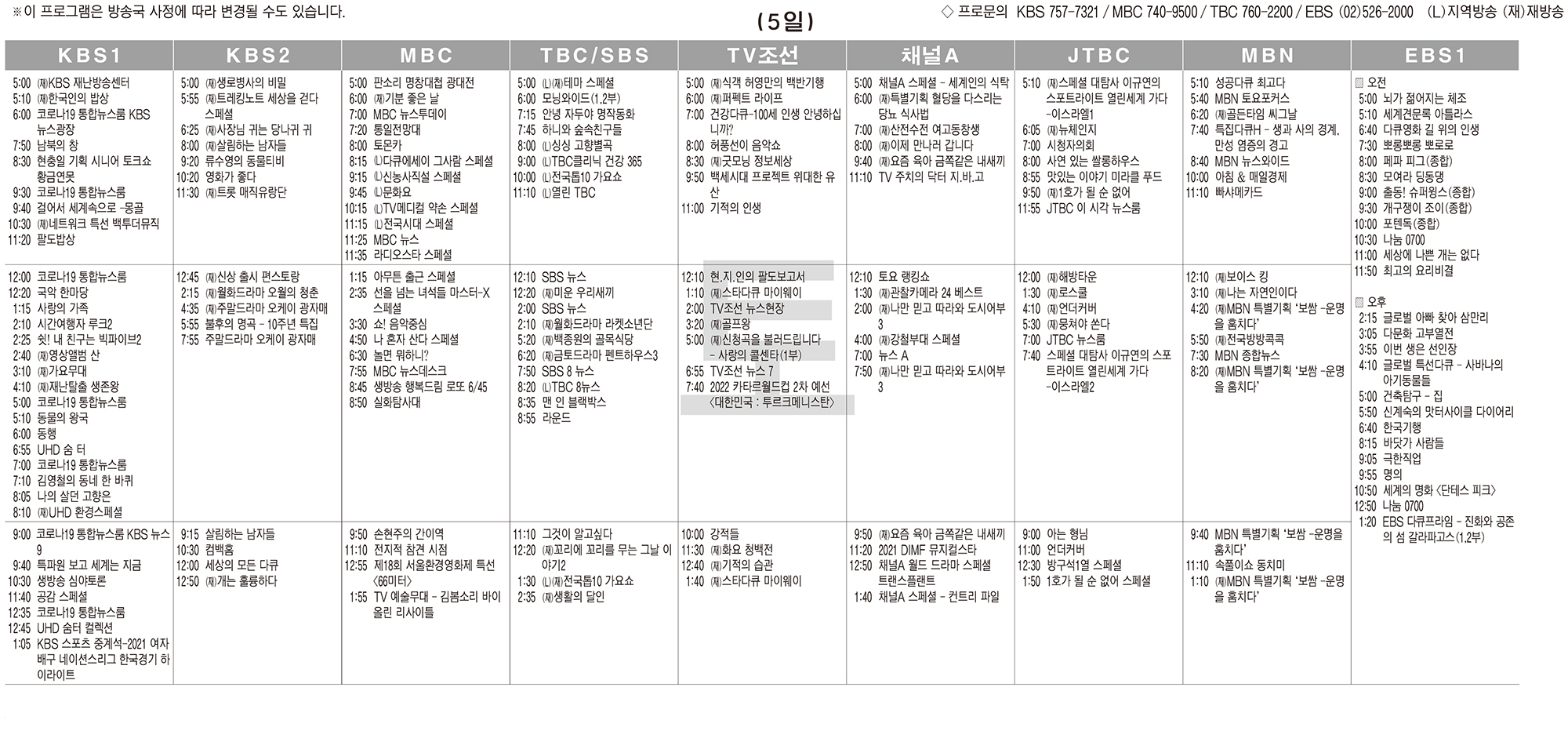 카카오톡 페이스북 트위터 전체 네이버밴드 네이버블로그 6월5일(토) TV 편성표 박성희 기사 전체보기 영남일보(www.yeongnam.com), 무단전재 및 수집, 재배포금지 연예인기뉴스