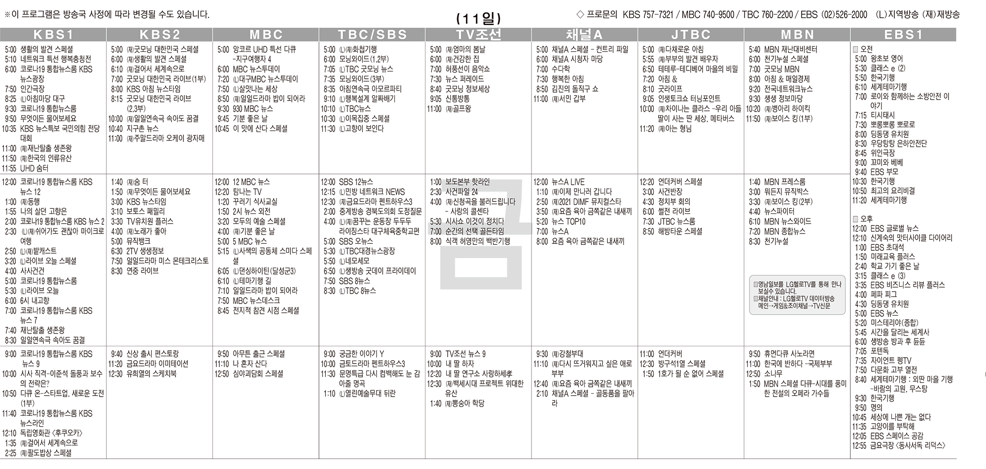 카카오톡 페이스북 트위터 전체 네이버밴드 네이버블로그 6월11일(금) TV 편성표 박성희 기사 전체보기 영남일보(www.yeongnam.com), 무단전재 및 수집, 재배포금지 연예인기뉴스