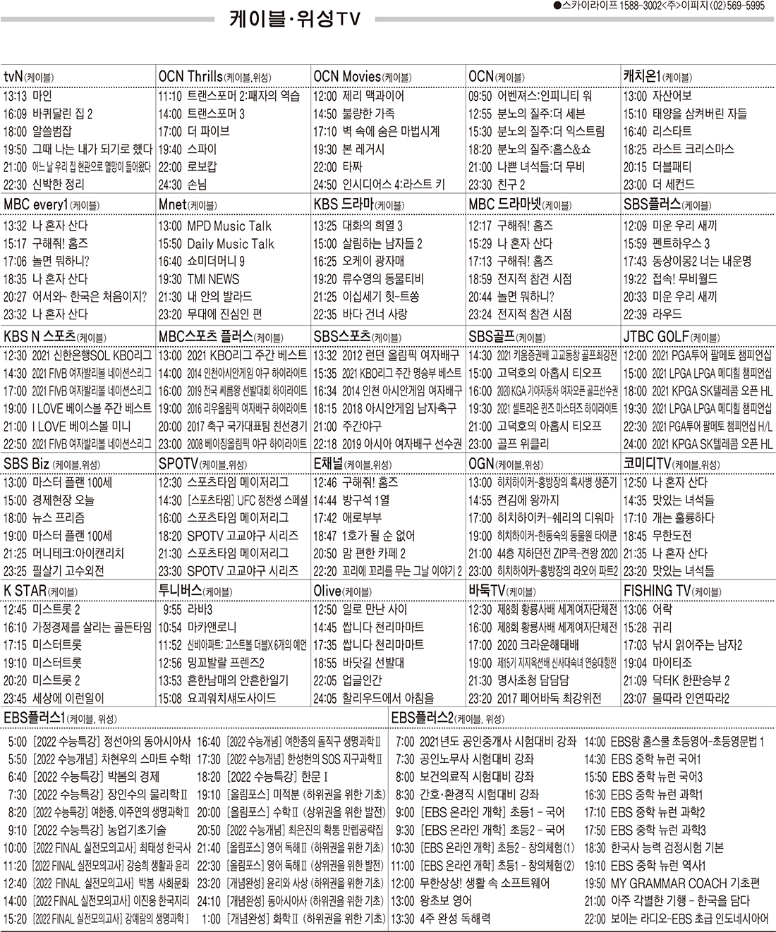 카카오톡 페이스북 트위터 전체 네이버밴드 네이버블로그 6월14일(월) 케이블·위성TV 편성표 박성희 기사 전체보기 영남일보(www.yeongnam.com), 무단전재 및 수집, 재배포금지 연예인기뉴스