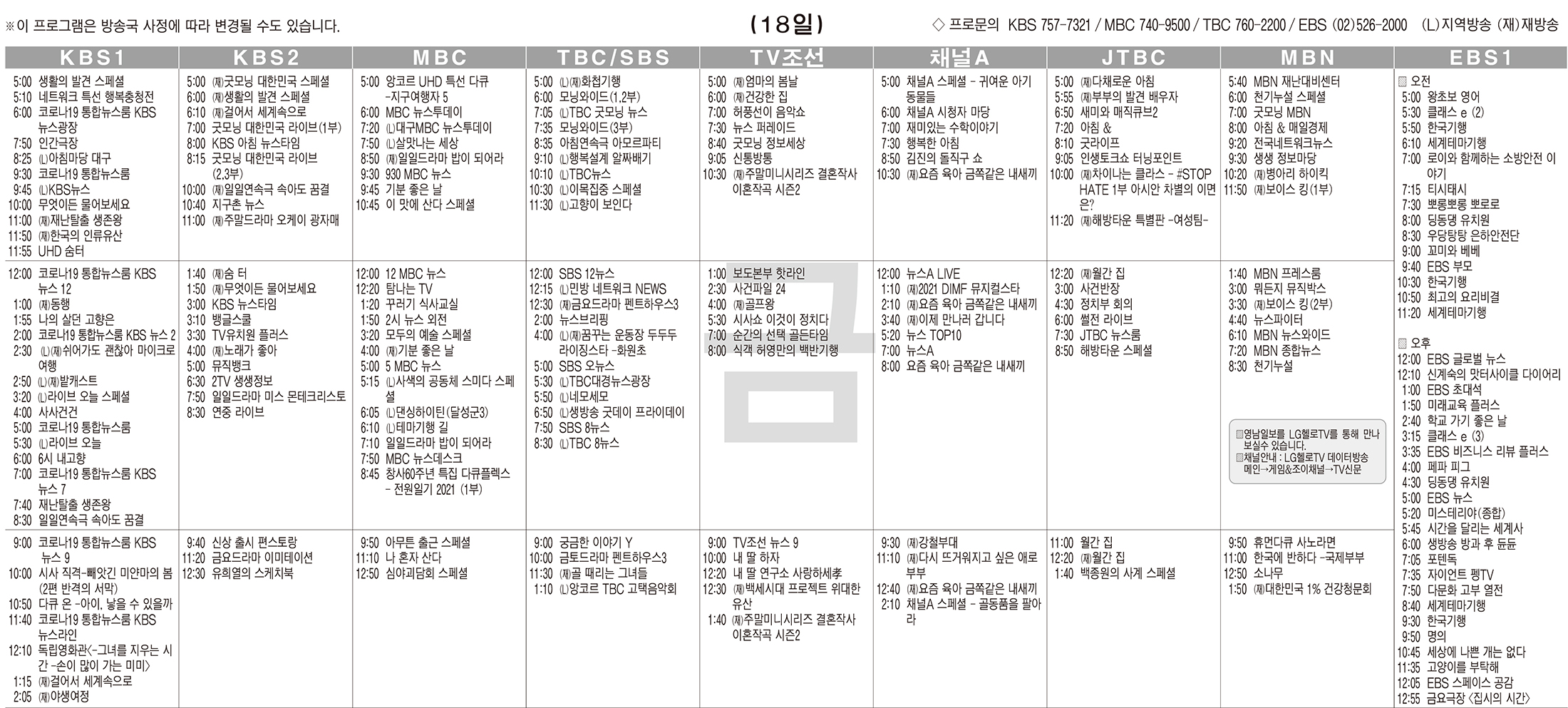 카카오톡 페이스북 트위터 전체 네이버밴드 네이버블로그 6월18일(금) TV 편성표 박성희 기사 전체보기 영남일보(www.yeongnam.com), 무단전재 및 수집, 재배포금지 연예인기뉴스