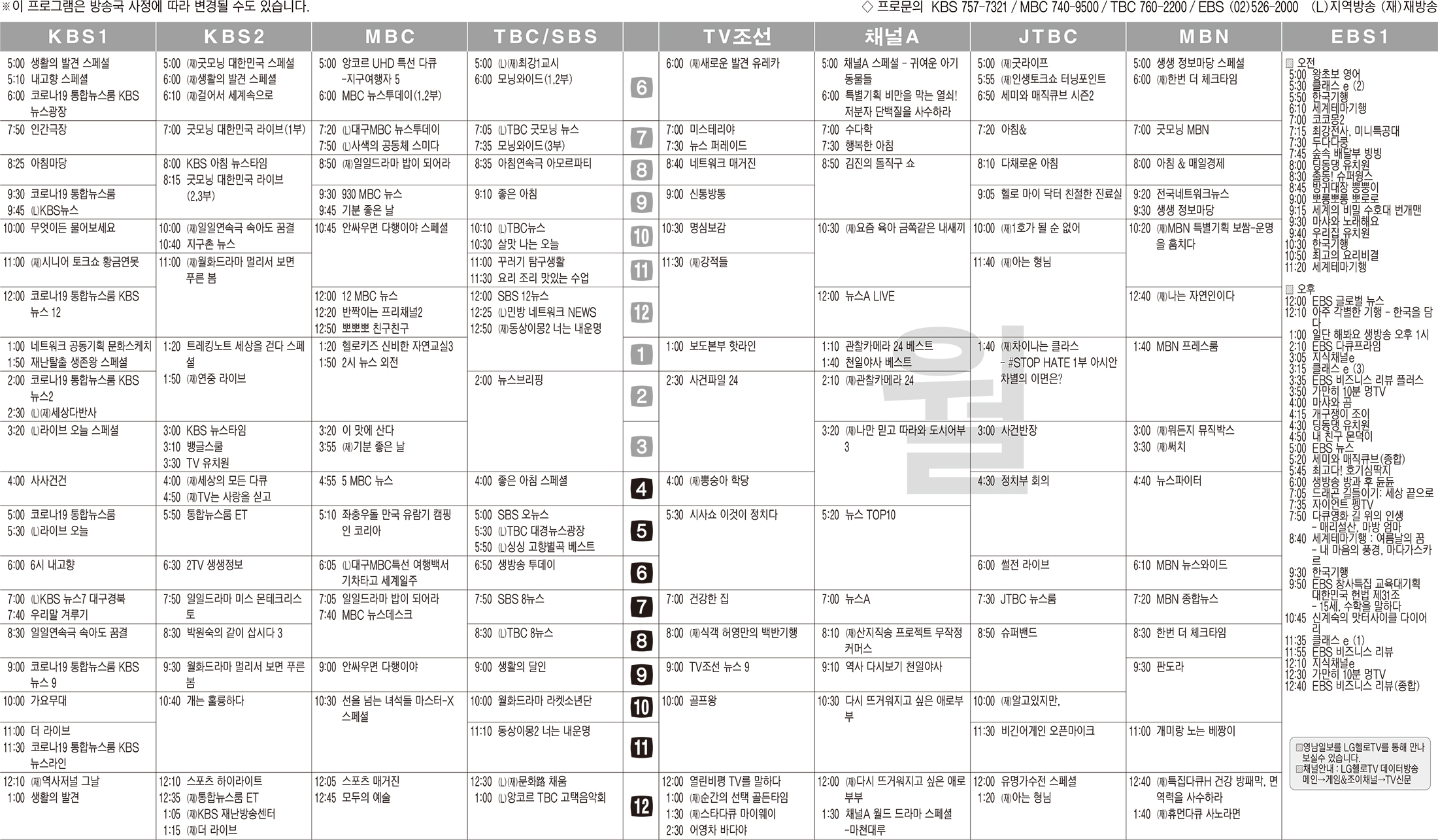 카카오톡 페이스북 트위터 전체 네이버밴드 네이버블로그 6월21일(월) TV 편성표 박성희 기사 전체보기 영남일보(www.yeongnam.com), 무단전재 및 수집, 재배포금지 연예인기뉴스
