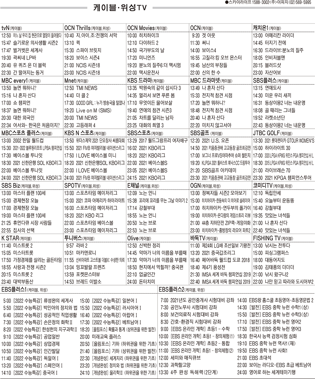 카카오톡 페이스북 트위터 전체 네이버밴드 네이버블로그 6월23일(수) 케이블·위성TV 편성표 박성희 기사 전체보기 영남일보(www.yeongnam.com), 무단전재 및 수집, 재배포금지 연예인기뉴스