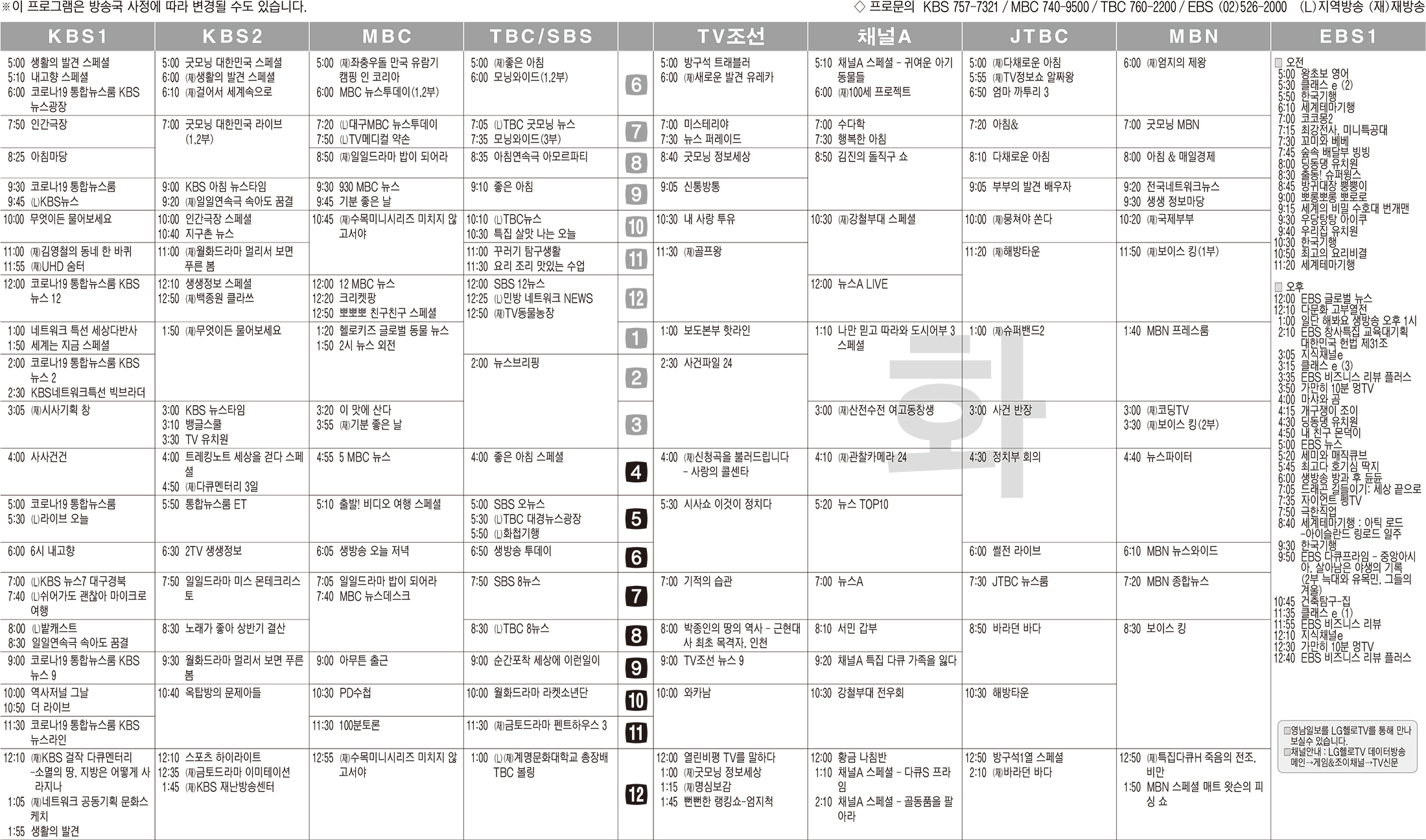 카카오톡 페이스북 트위터 전체 네이버밴드 네이버블로그 6월29일(화) TV 편성표 박성희 기사 전체보기 영남일보(www.yeongnam.com), 무단전재 및 수집, 재배포금지 연예인기뉴스