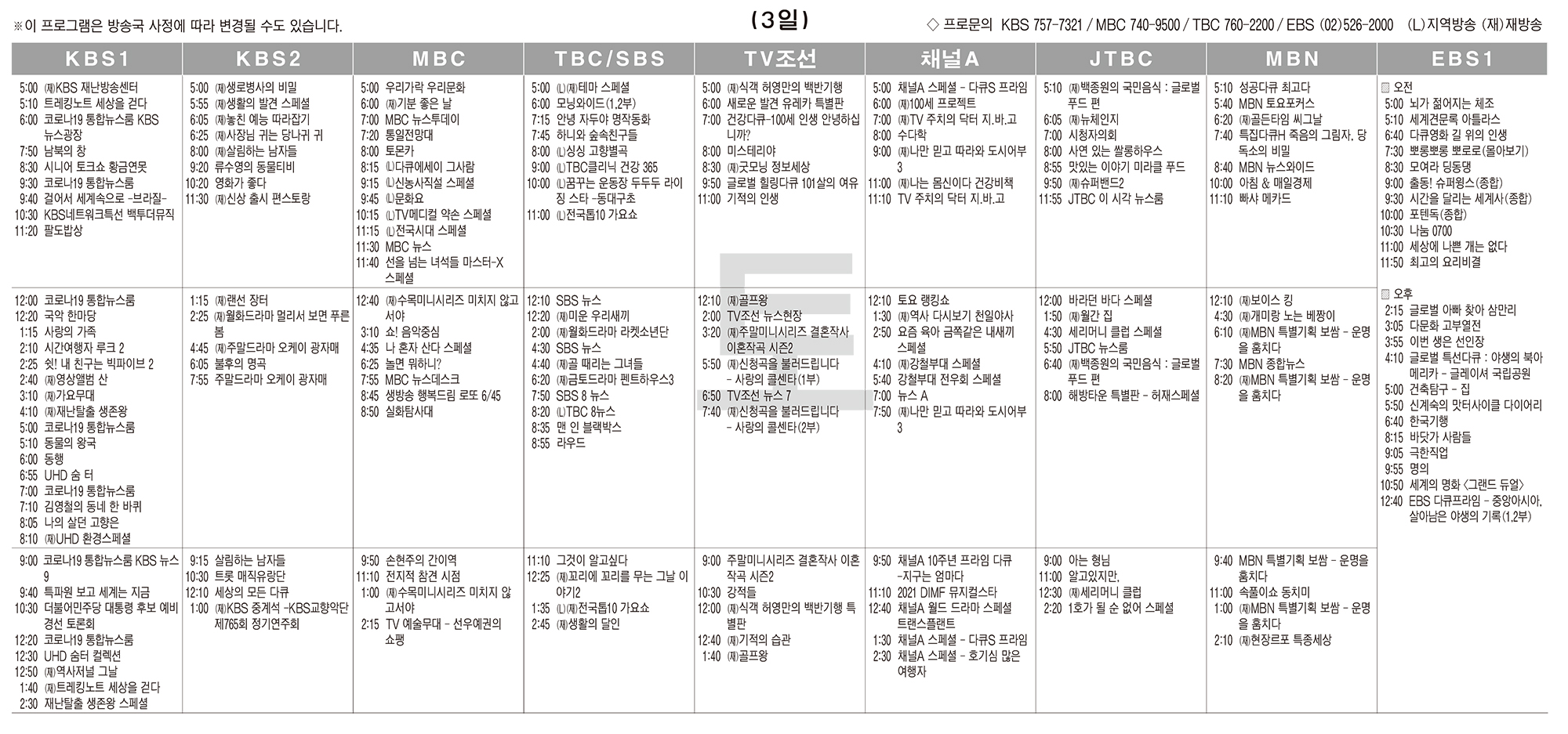 카카오톡 페이스북 트위터 전체 네이버밴드 네이버블로그 7월3일(토) TV 편성표 박성희 기사 전체보기 영남일보(www.yeongnam.com), 무단전재 및 수집, 재배포금지 연예인기뉴스