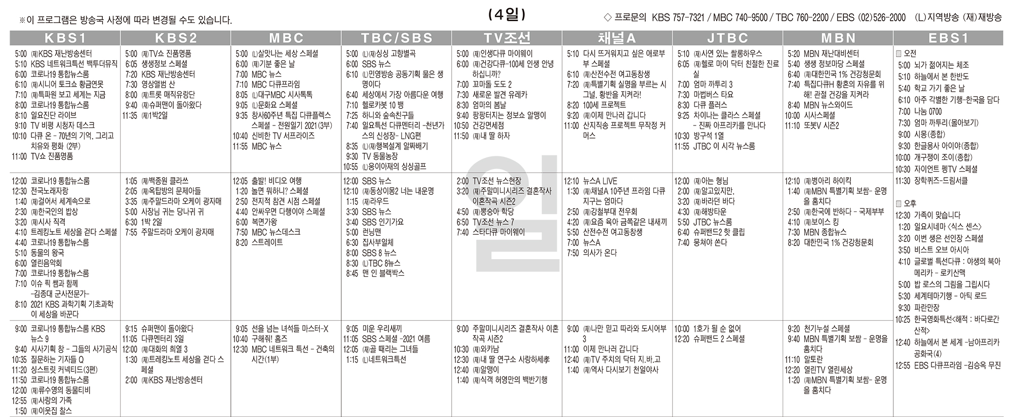 카카오톡 페이스북 트위터 전체 네이버밴드 네이버블로그 7월4일(일) TV 편성표 박성희 기사 전체보기 영남일보(www.yeongnam.com), 무단전재 및 수집, 재배포금지 연예인기뉴스