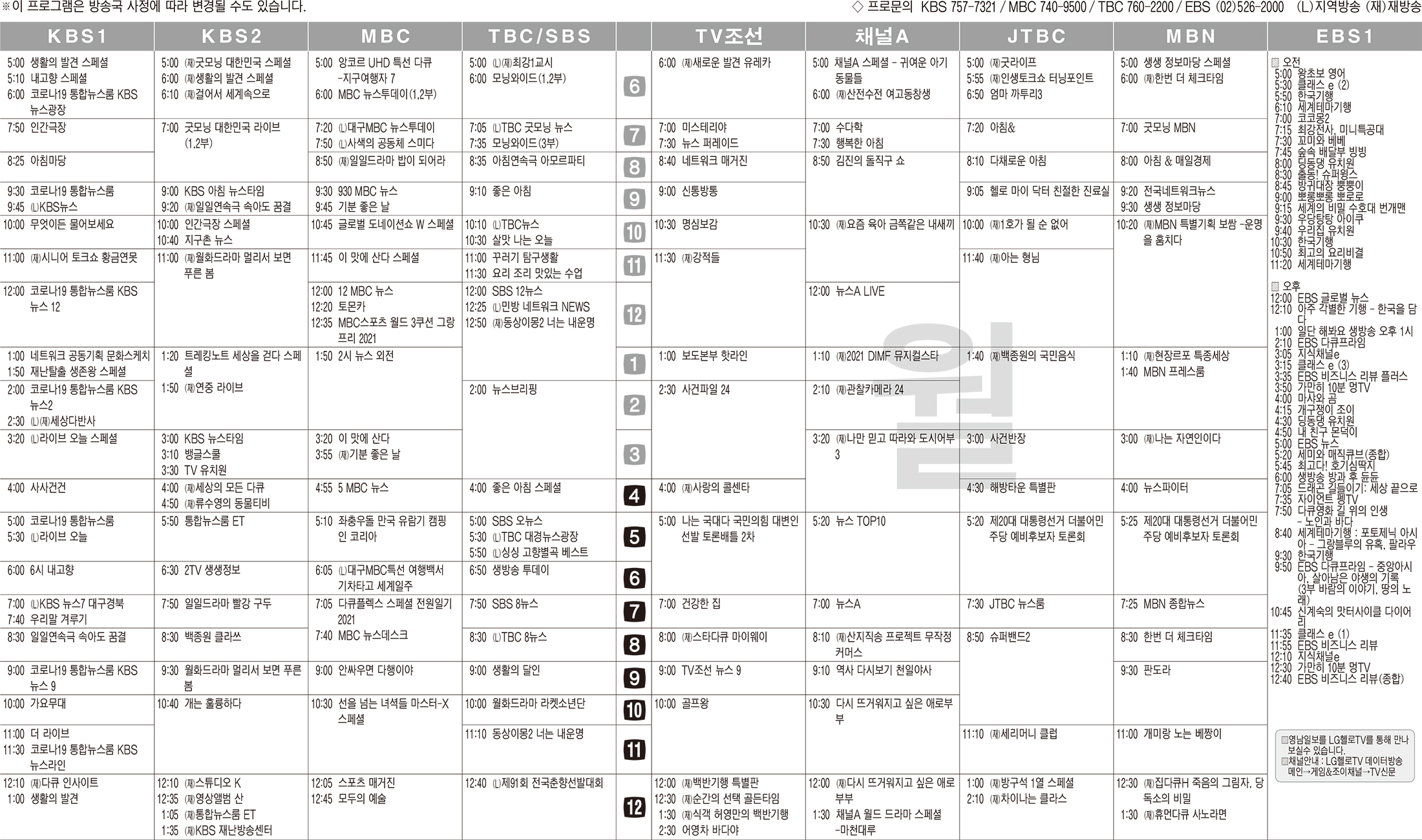 카카오톡 페이스북 트위터 전체 네이버밴드 네이버블로그 7월5일(월) TV 편성표 박성희 기사 전체보기 영남일보(www.yeongnam.com), 무단전재 및 수집, 재배포금지 연예인기뉴스