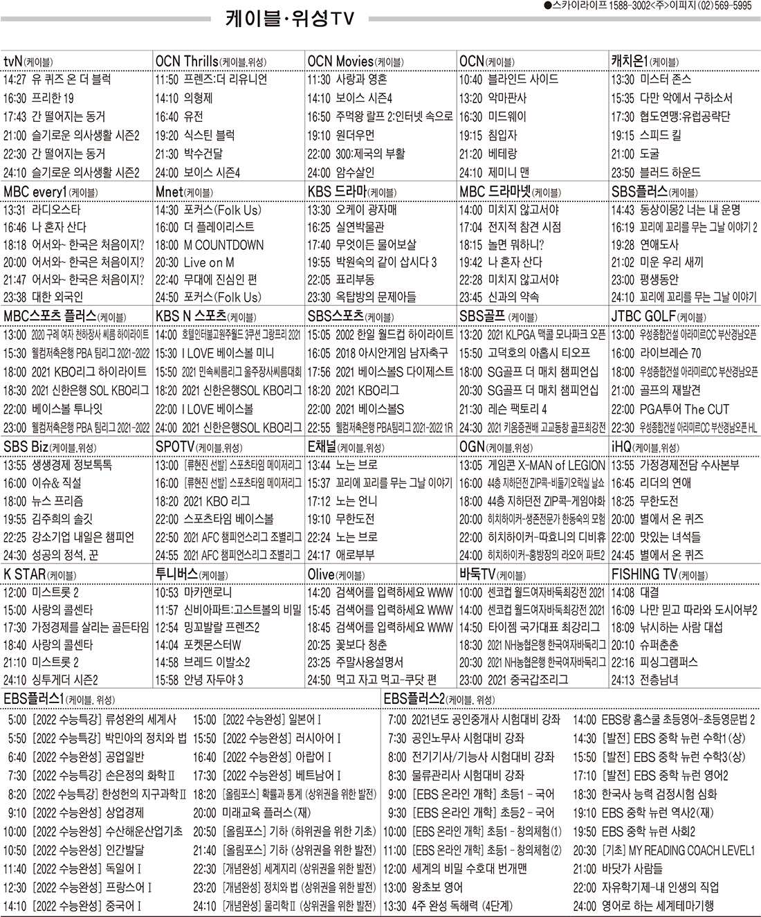 카카오톡 페이스북 트위터 전체 네이버밴드 네이버블로그 7월8일(목) 케이블·위성TV 편성표 박성희 기사 전체보기 영남일보(www.yeongnam.com), 무단전재 및 수집, 재배포금지 연예인기뉴스