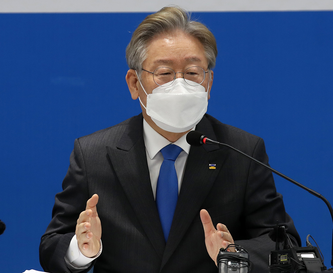 | 더불어민주당 대선 예비후보인 이재명 경기도지사가 25일 더불어민주당 광주광역시당 회의실에서 기자간담회를 하고 있다. 연합뉴스 |