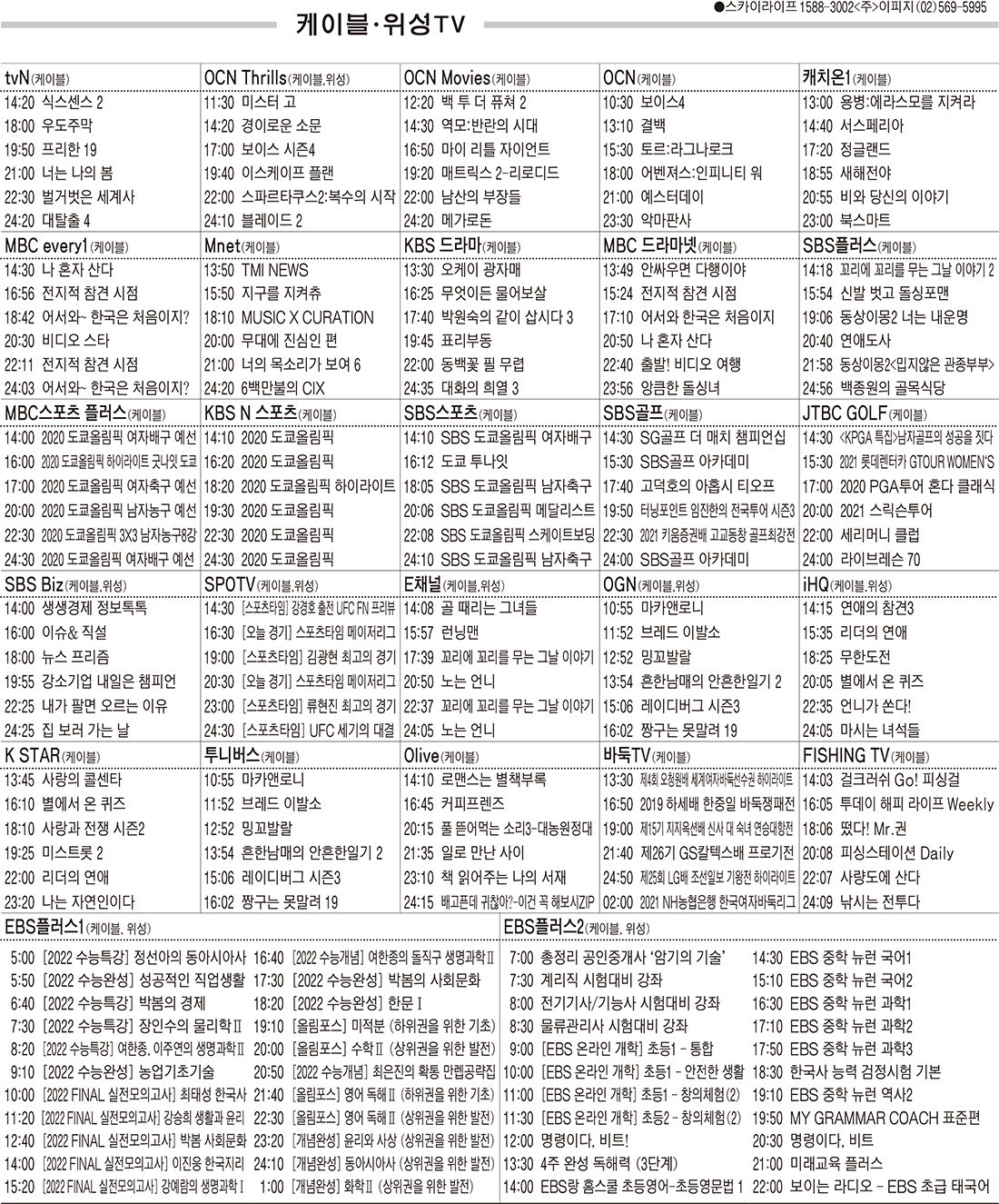 카카오톡 페이스북 트위터 전체 네이버밴드 네이버블로그 7월27일(화) 케이블·위성TV 편성표 박성희 기사 전체보기 영남일보(www.yeongnam.com), 무단전재 및 수집, 재배포금지 연예인기뉴스