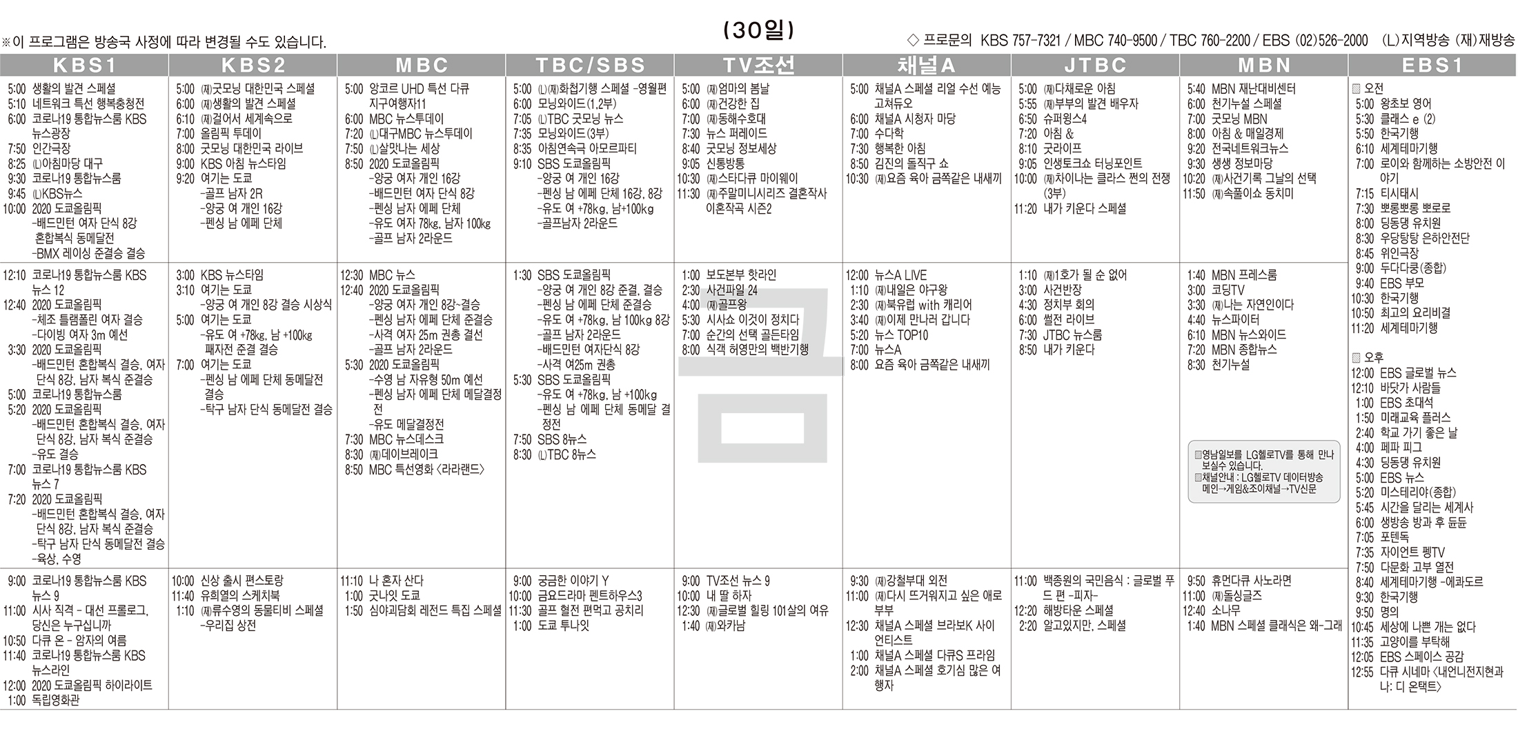 카카오톡 페이스북 트위터 전체 네이버밴드 네이버블로그 7월30일(금) TV 편성표 박성희 기사 전체보기 영남일보(www.yeongnam.com), 무단전재 및 수집, 재배포금지 연예인기뉴스