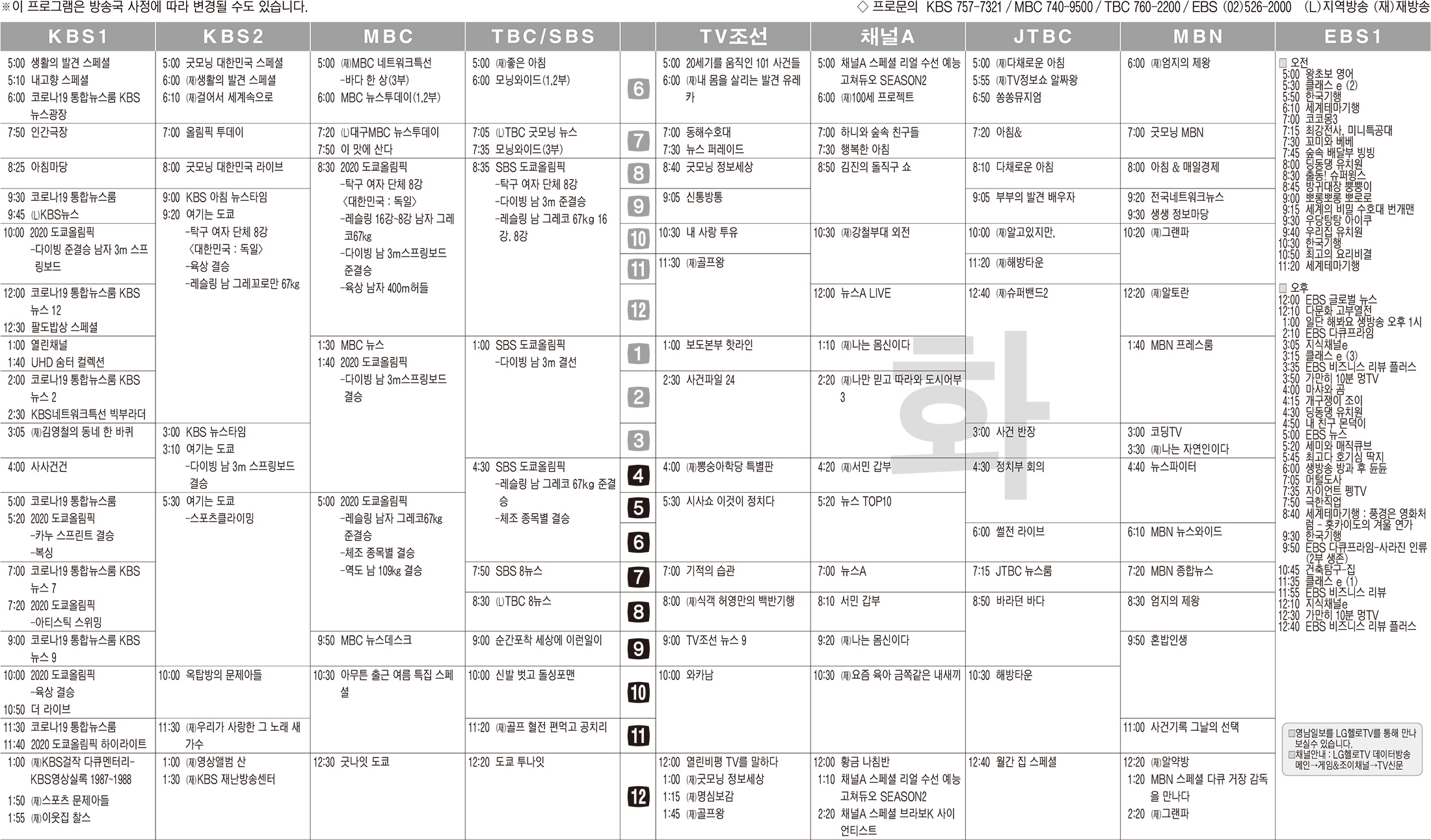 카카오톡 페이스북 트위터 전체 네이버밴드 네이버블로그 8월3일(화) TV 편성표 박성희 기사 전체보기 영남일보(www.yeongnam.com), 무단전재 및 수집, 재배포금지 연예인기뉴스