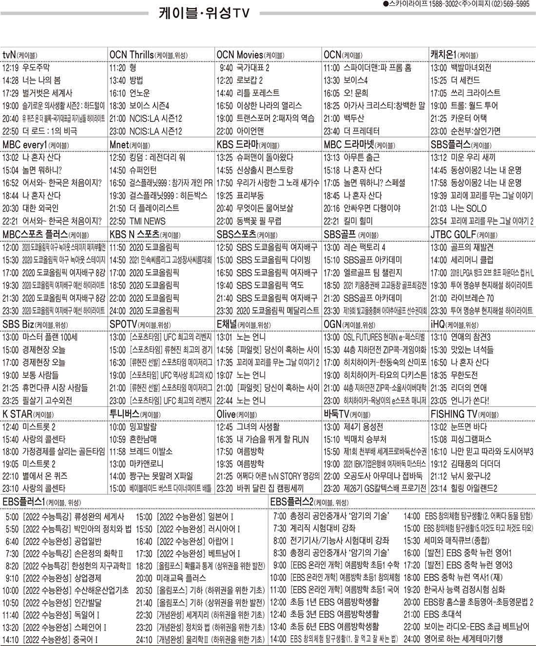 카카오톡 페이스북 트위터 전체 네이버밴드 네이버블로그 8월4일(수) 케이블·위성TV 편성표 박성희 기사 전체보기 영남일보(www.yeongnam.com), 무단전재 및 수집, 재배포금지 연예인기뉴스