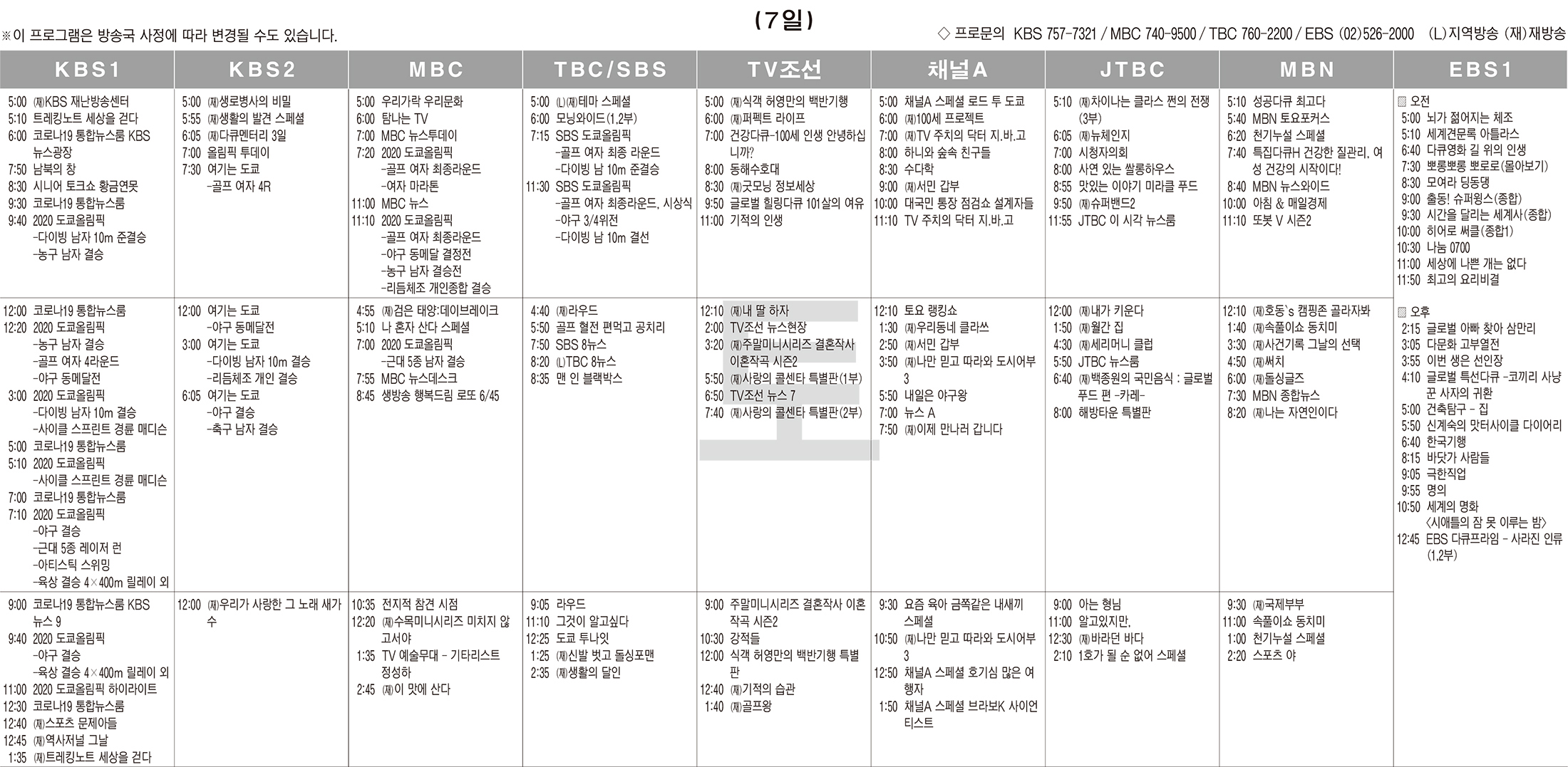 카카오톡 페이스북 트위터 전체 네이버밴드 네이버블로그 8월7일(토) TV 편성표 박성희 기사 전체보기 영남일보(www.yeongnam.com), 무단전재 및 수집, 재배포금지 연예인기뉴스