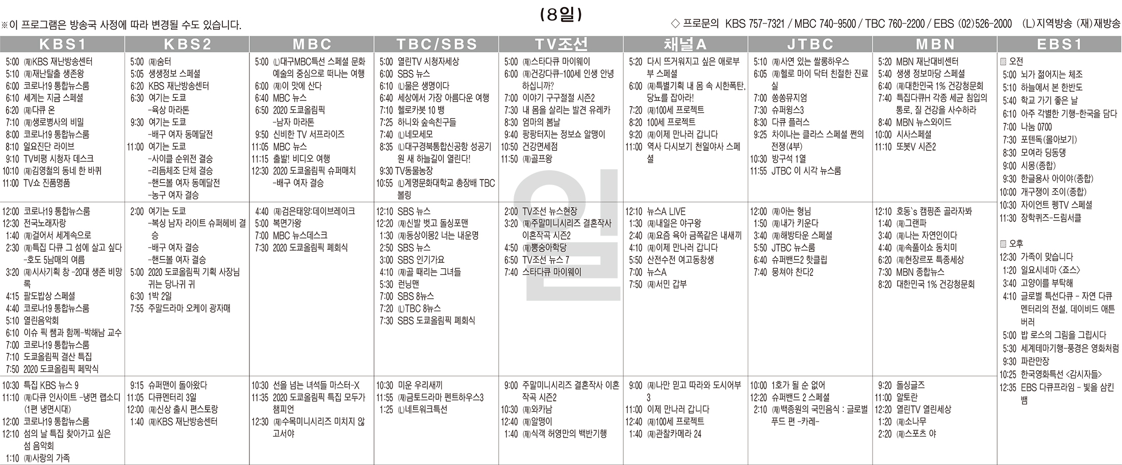 카카오톡 페이스북 트위터 전체 네이버밴드 네이버블로그 8월8일(일) TV 편성표 박성희 기사 전체보기 영남일보(www.yeongnam.com), 무단전재 및 수집, 재배포금지 연예인기뉴스