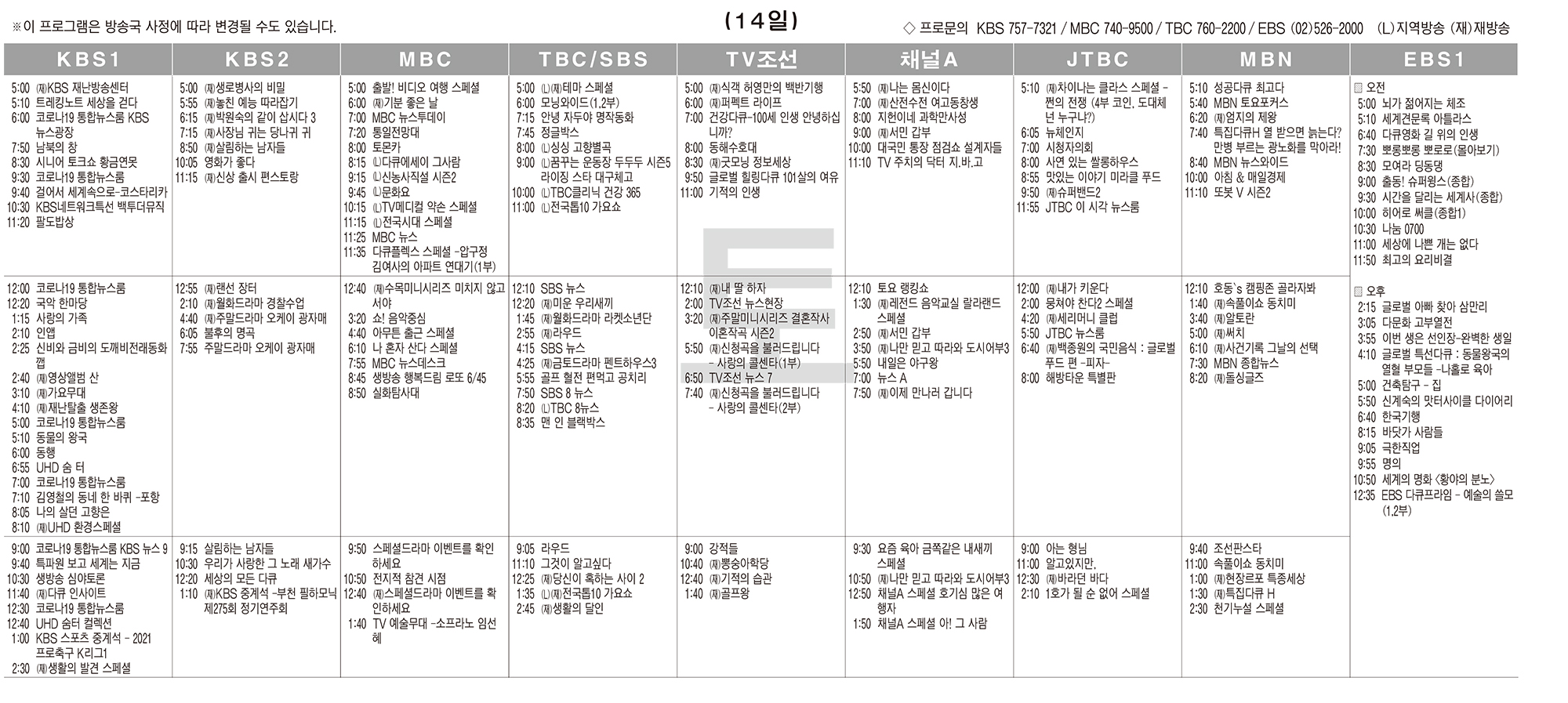 카카오톡 페이스북 트위터 전체 네이버밴드 네이버블로그 8월14일(토) TV 편성표 박성희 기사 전체보기 영남일보(www.yeongnam.com), 무단전재 및 수집, 재배포금지 연예인기뉴스