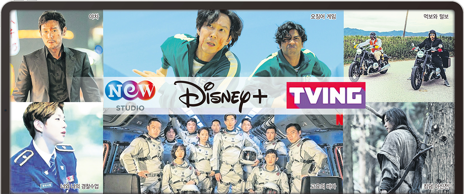 이에 맞서는 넷플릭스의 라인업이 눈길을 끈다. 전지현 주연의 '킹덤: 아신전' 공개에 이어 456억원의 상금이 걸린 의문의 서바이벌 도전기를 그린 이정재·박해수 주연의 '오징어 게임', 설경구·박해수 주연의 첩보물 '야차', 공유·배두나 주연의 SF 스릴러 '고요의 바다', 한인 마약왕 검거를 다룬 하정우·황정민 주연의 '수리남', 그리고 김태호 PD와 정지훈·노홍철이 의기투합한 로드트립 예능 '먹보와 털보' 등을 공개한다.