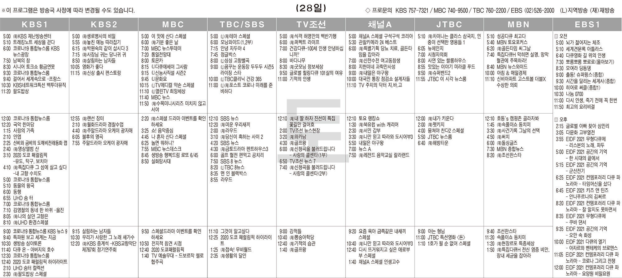 카카오톡 페이스북 트위터 전체 네이버밴드 네이버블로그 8월28일(토) TV 편성표 박성희 기사 전체보기 영남일보(www.yeongnam.com), 무단전재 및 수집, 재배포금지 연예인기뉴스